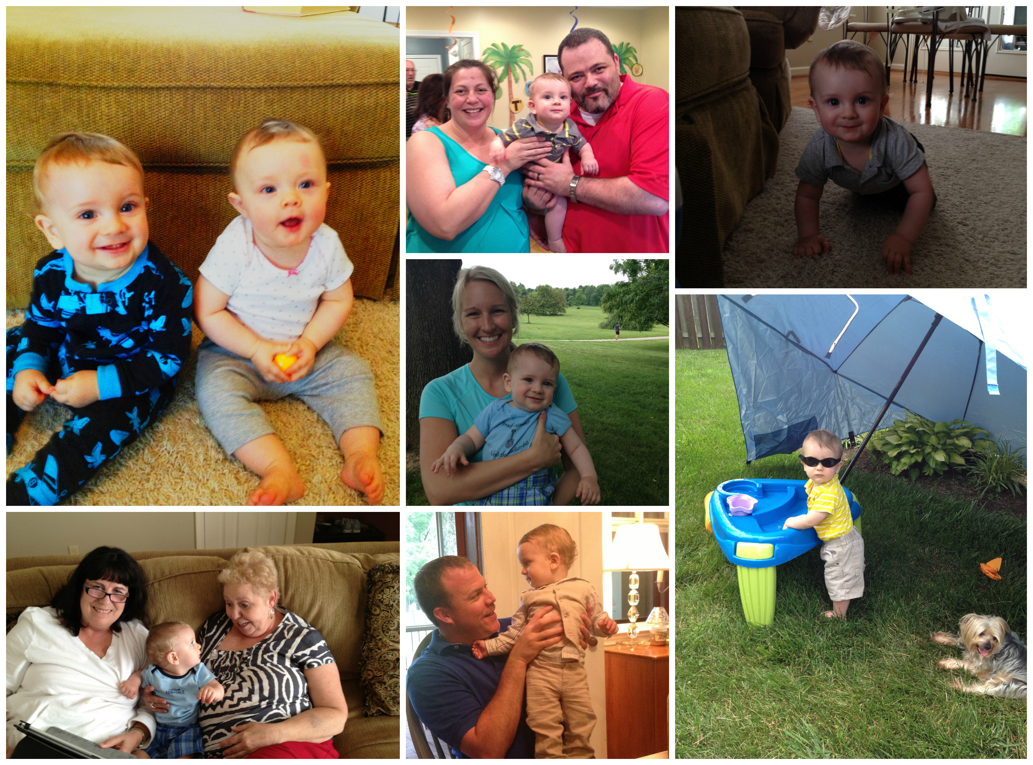 Another big milestone- you took your first steps! 6/5/13. Ever since then you have been pushing the boundaries more and more of how far you can walk. You love to walk back and forth between us, you now can do 6 or 7 steps without falling. Speaking of falling, you got your first busted lip this weekend when you were walking behind a toy and when you fell you hit your mouth on its wheel. There was crying, a little blood, and a puffy lip, but you ended up okay! As rough as you are all the time, I’m sure there is bound to be more busted lips as you grow.