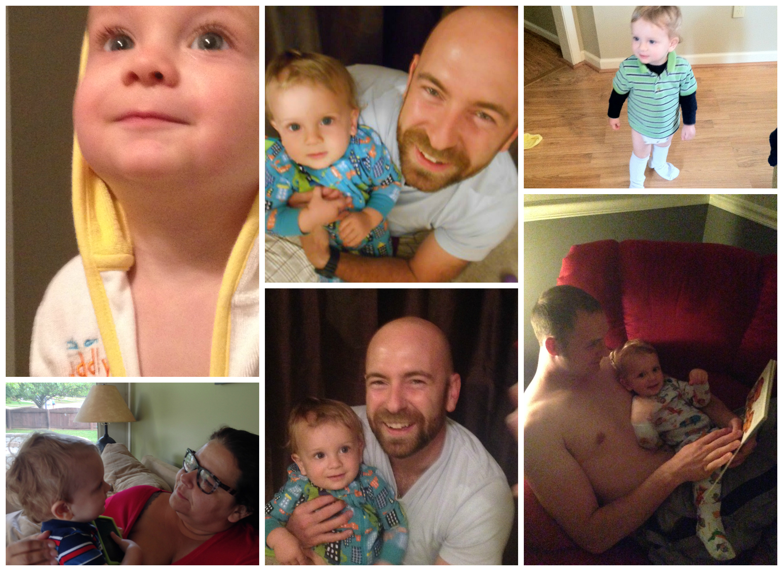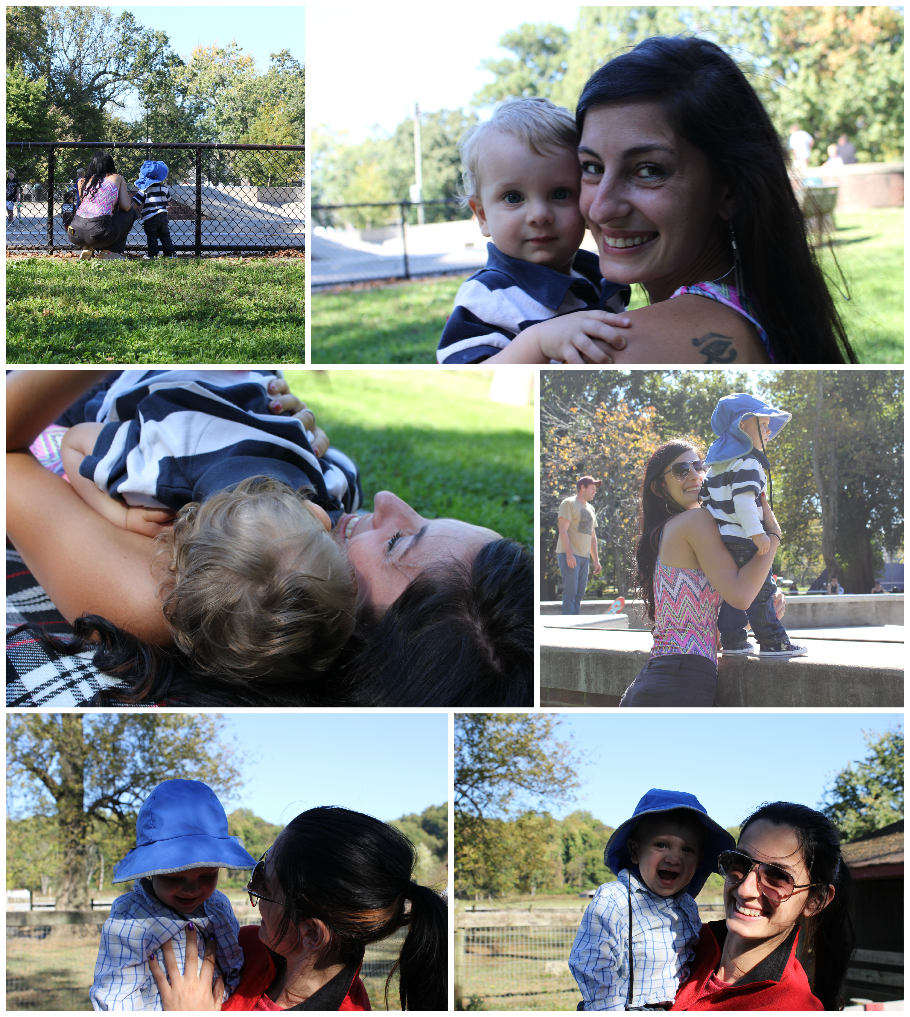 It’s getting harder and harder to keep up with writing these blog posts for you, you keep us busy!!  October was another fun month.  You are 32″ tall, and 21 lbs 11 oz, (78% height, and 14th percentile in weight… still tall and skinny!)  Your favorite book right now is “A you’re adorable”, although you love all books that have flaps you can open, or things you can touch in them.  You especially love the Spot books.   Your favorite meal is a crockpot meal that has chicken, sweet potatoes and squash, and then pears for dessert.  You love love love pears.  It’s a good thing, because you are allergic to most of the other fruits.    You love listening to music, and you do a little happy feet dance.   You still love animals, they’re probably your favorite thing right now.  Your favorite toy is your blocks, you love to dump them out then put them together, then throw it on the ground and do it again.   You also still love your kitchen, and putting things in and out of the cabinets.   You whine to go outside because you love it so much.  Anything outside makes you happy.     You have turned into a good sleeper (when you’re not sick or teething).  You go to sleep around 7:30-8, and stay asleep till about 5am, when we get you and put you in bed with us.  You then proceed to thrash around for the next hour.    You are babbling a lot more and love to say “bye-bye” and wave at people.  You also blow kisses, and make animal noises.   You recognize some colors when we ask you to point to them, and can identify many of your body parts.  You know how to sign “all-done” when you want down from the table.  You had to get vaccines this month, and at the same time you had 4 molars breaking through.  It was a tough couple of weeks, but you now how tons of teeth!  All the better to eat with!  You love Dada’s cooking now.  Some of your favorite are the chicken/squash/sweet potato I mentioned earlier, and curry chicken with tofu and veggies, beefy vegetable tomato mix over cous cous, you love pasta and any kind of tomato sauce.  We’ve had to be creative with your meals since you’re allergic to everything under the sun, but it’s getting easier as time goes on.