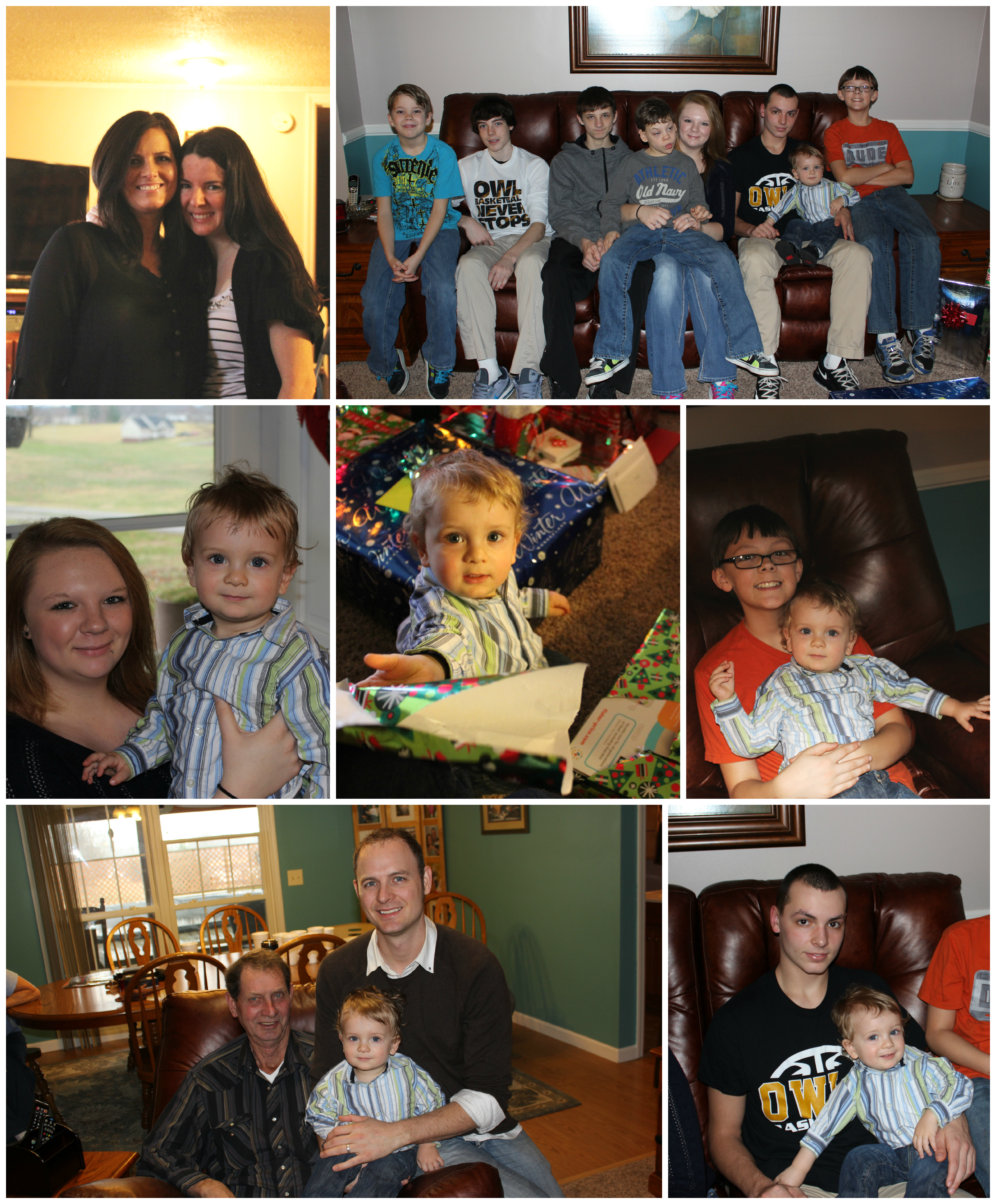 Another important even this month was Christmas! The weekend before Christmas we went down to Tennessee to celebrate with all of your cousins, Aunt Jera, Uncle Kevin, Uncle BJ, Aunt Mischele, your Grandaddy, Granny Pat, Gramma, and Papa Mike.  You got lots of cool toys, and even more lovin from all your family who don’t get to see you much.   You even got to watch your cousins Camron and Nathan play in their basketball games.  You LOVED watching them playing and would clap anytime a basket went in.  Although I made the mistake of letting you on the court at half time during the last game and you got REALLY mad when I took you back off.   You loved trying to steal cigarettes out of your Grandaddy’s pockets, and you loved swinging on the front porch with your Gramma.   You also spent the entire weekend playing ball with your cousins.