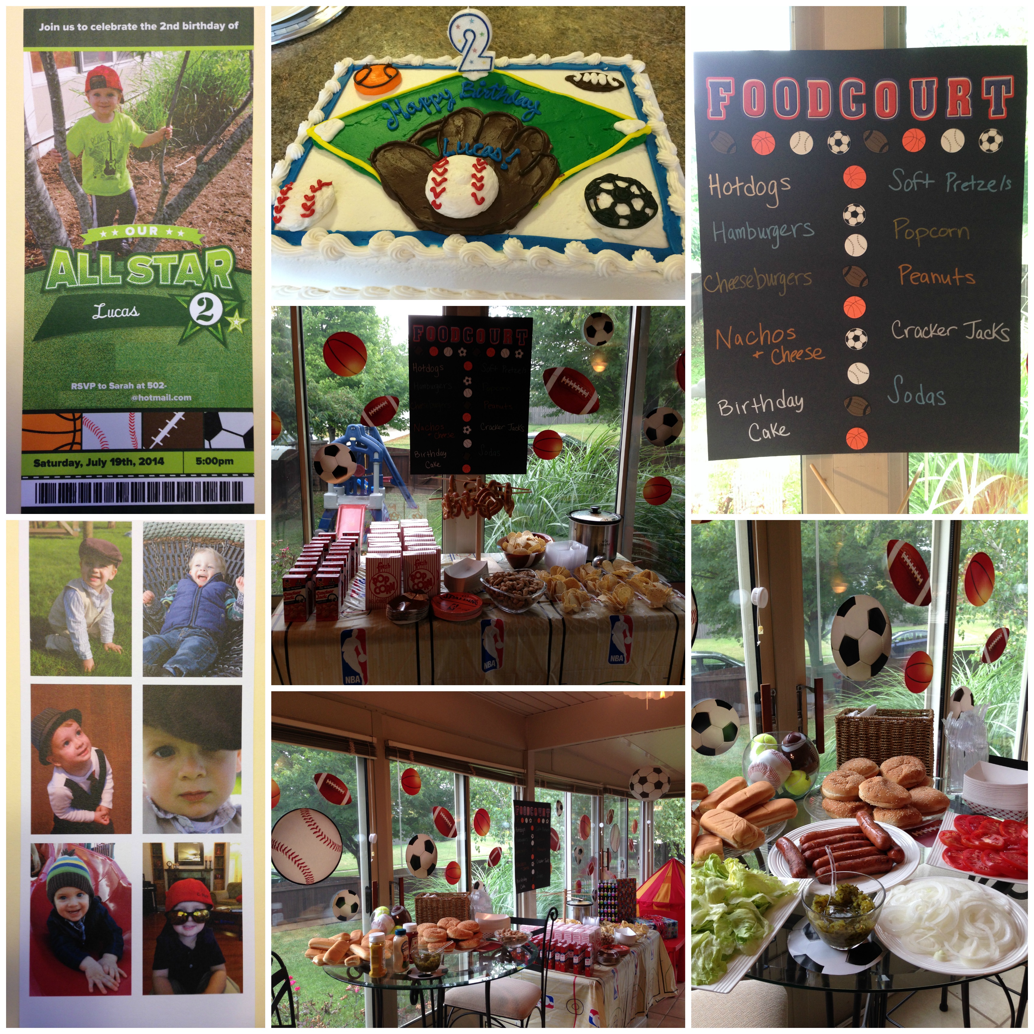 We started off your birthday by singing happy birthday to you in bed. You didn’t really know why we were singing, but you liked it!! Your next birthday tradition that we did was your birthday pancakes! Daddy made you your pancakes in the shape of a 2, and even added some chocolate chips for you, and you loved it. Then we got busy decorating for your sports themed birthday party. There were balls all over the place! Baseballs, basketballs, soccer balls, footballs etc. etc. You were so excited to see the balls everywhere. You love sports so so so much. All sports, every sport! Anything with a ball. At your party we served “ballpark food” hamburgers, hotdogs, nachos & cheese, soft pretzels, peanuts and cracker jacks. It turned out great!! Family and friends from near and far came to celebrate with you. It was a great day! These past two years have been amazing. You are such a special kid. You are sweet, and kind, loving, and smart. You are handsome as they come, and have the proper amount of spice thrown in to keep us on our toes. We could not have asked for a better son.
