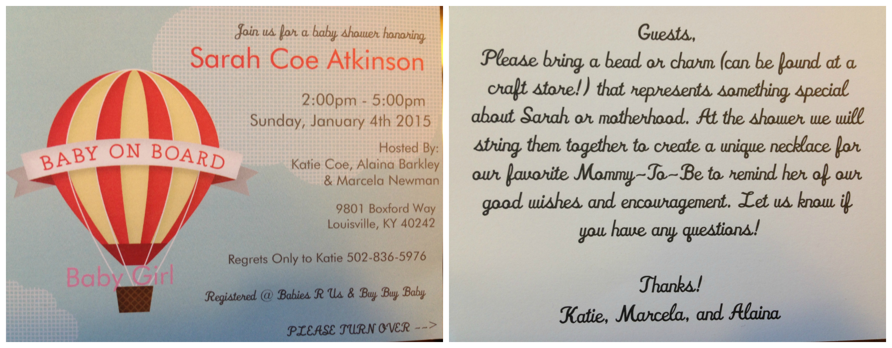 All of our friends and family brought a charm or bead that when put together makes a necklace of love and support as we prepare to bring you in to this world. Everyone signed a globe for you to have as you grow older. There was even a game where guests had to decide which language from around the world the word “baby” was written in. There was also a list for people to write their advice on traveling with a baby.
