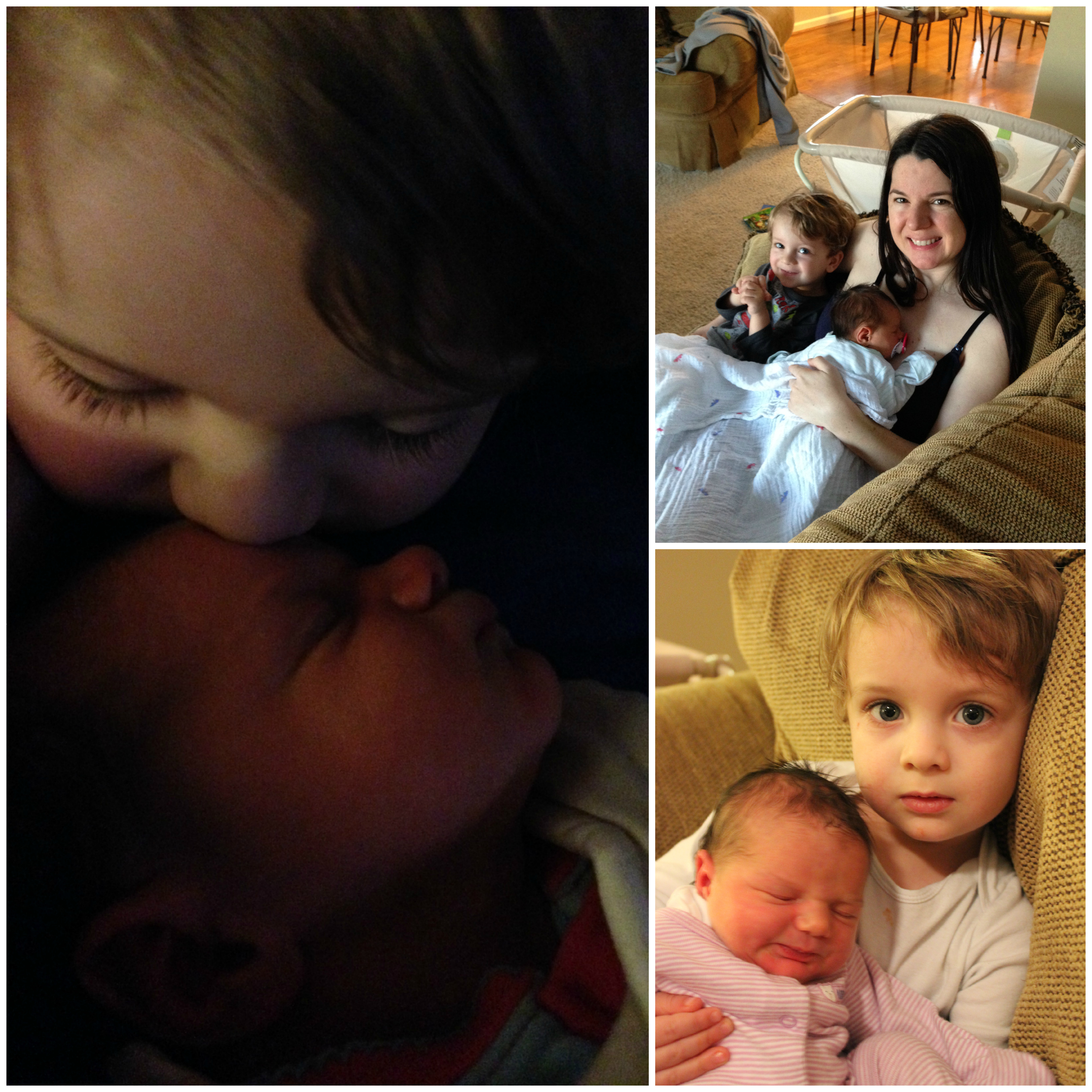 You got to hang out at the hospital with us for several hours, wanting to hold your baby sister the whole time. Ever since the day that you first met her, you haven’t wanted to be separated from her. Every morning you run out and say “Where’s my baby sister? Where’s Emme?” You get really mad if we don’t let you hold her. If she cries you pat her and say “it’s otay, it’s otay, don’t cry! My here. My here.” You love to have her sit in your lap while you watch tv, it was so surreal the first day that we were home as a family of 4, me, you, and Emme were on the couch watching Curious George, and it hit me. I have TWO kids. Amazing. We’re a family of 4.