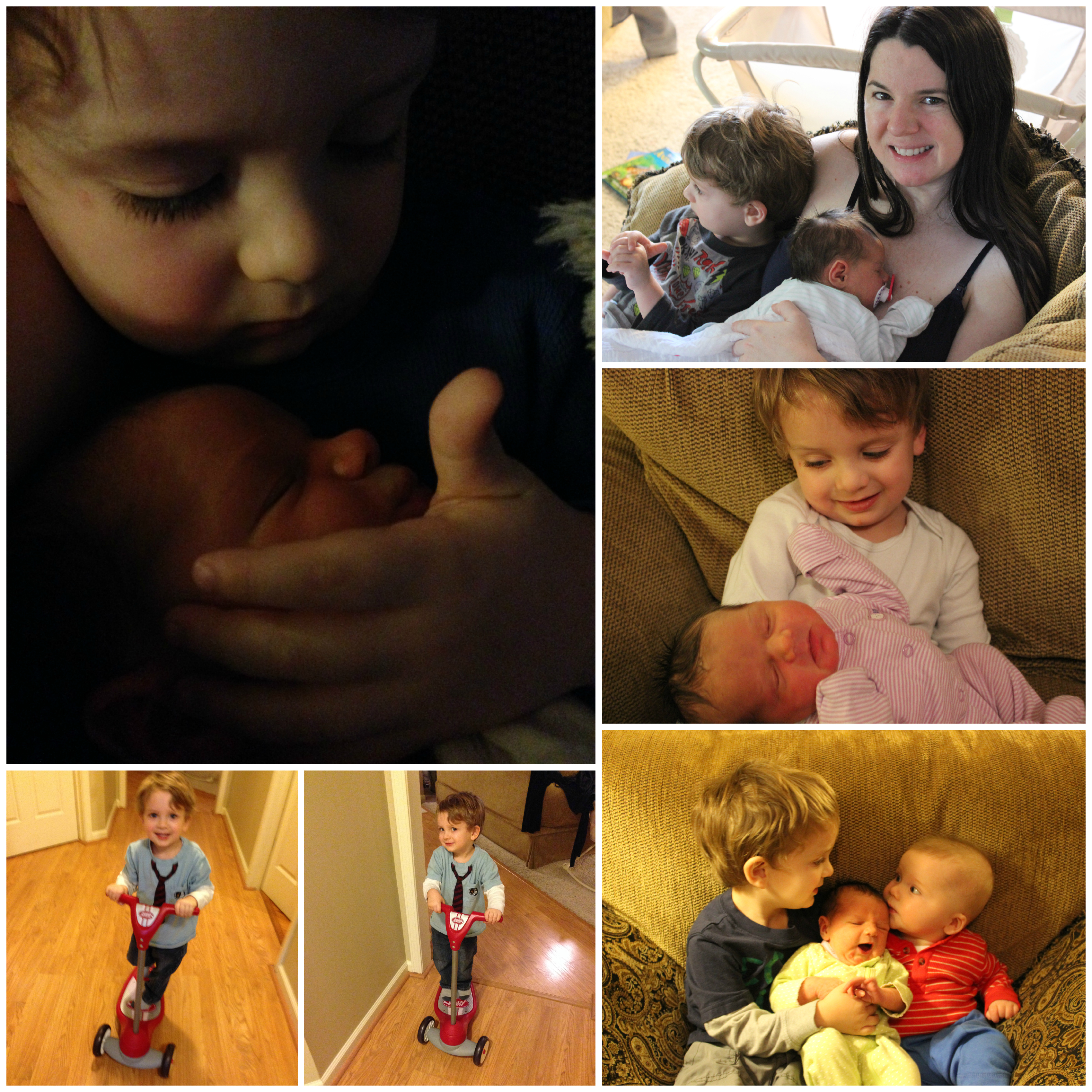 At home we had more visitors that first week, you got to meet your Auntie Julie and Eric, and new friend Eli.  Auntie Julie brought you presents and also has brought us dinner several times.  Yay! Your Daddy loves when he doesn’t have to cook (oh, by the way, you don’t know this yet- but your incredible Dad does all the grocery shopping and cooking for our family).   Elyse also brought us dinner again that first week.  We’re lucky to have such good friends!  Your Grammy came to snuggle you for a couple days- complete with more presents and groceries!  Your Aunt Jera got stuck in a snow storm in TN and couldn’t come to meet you, so she sent you up presents too that first week.