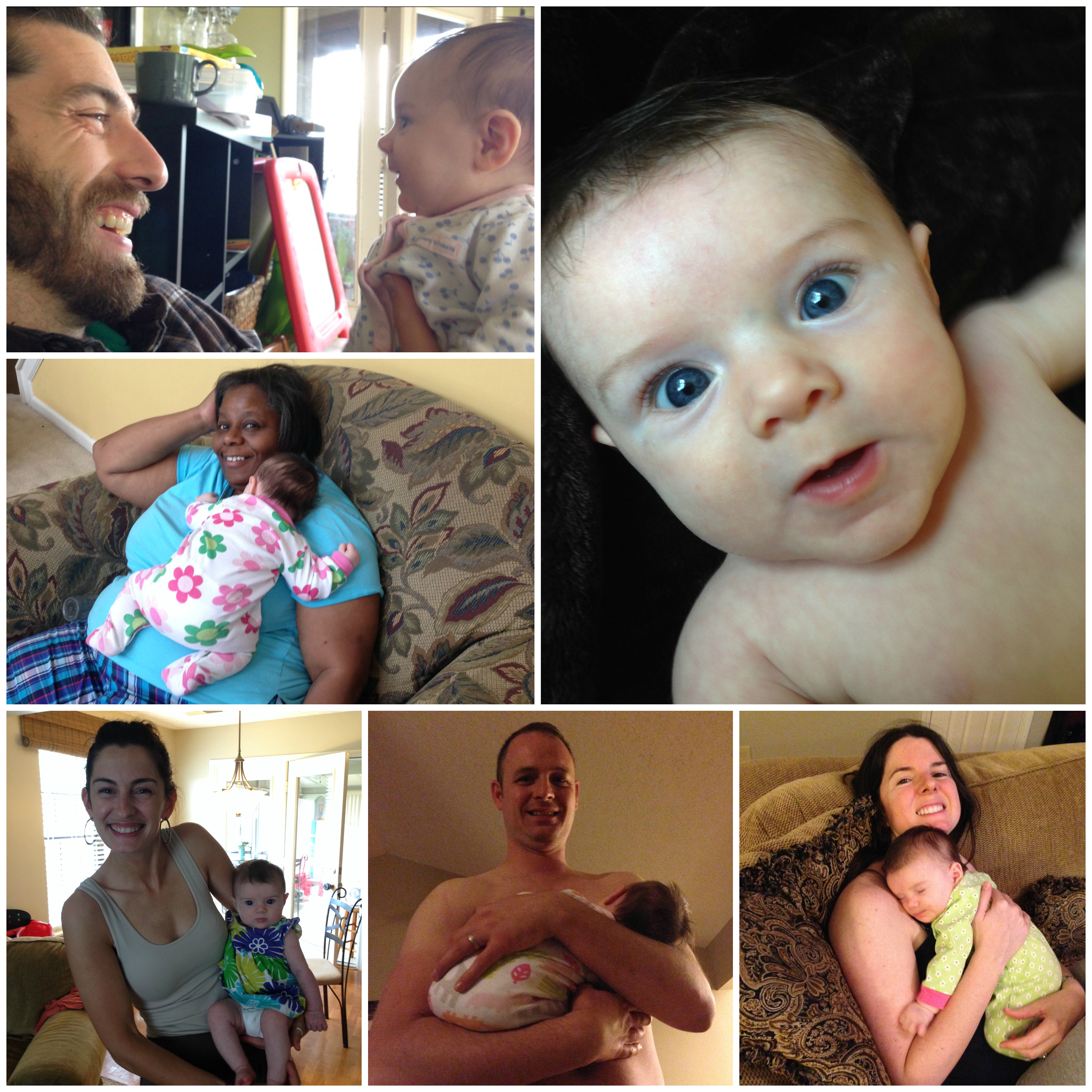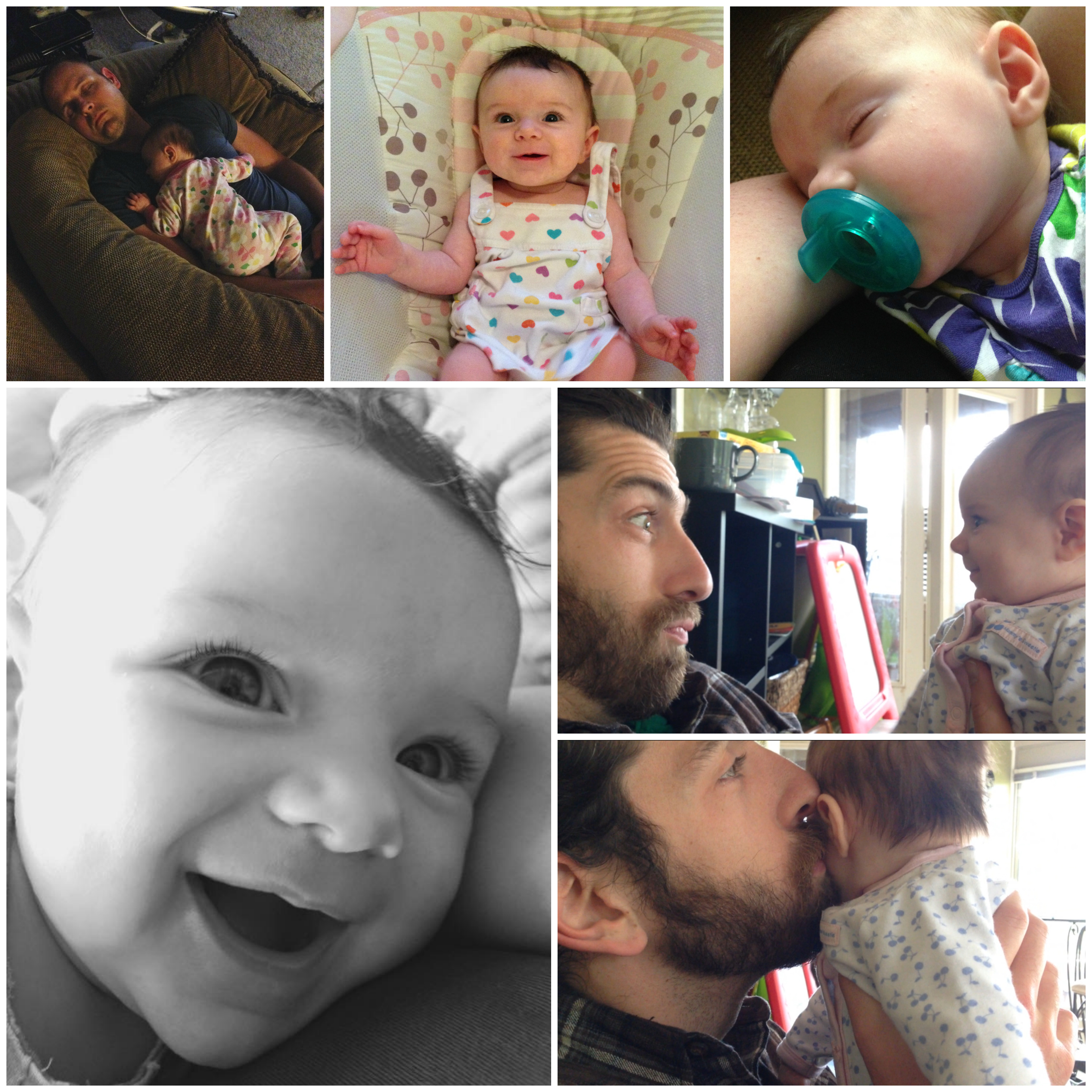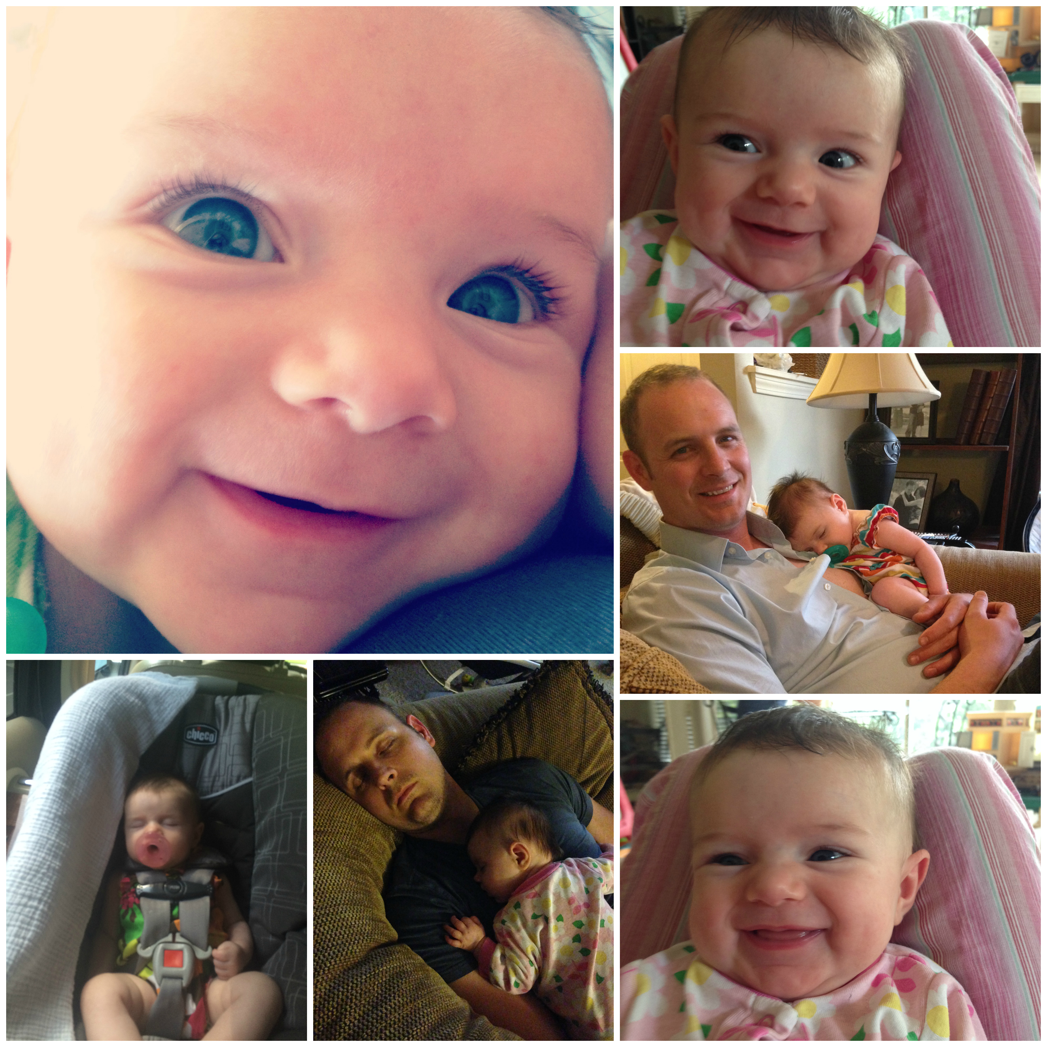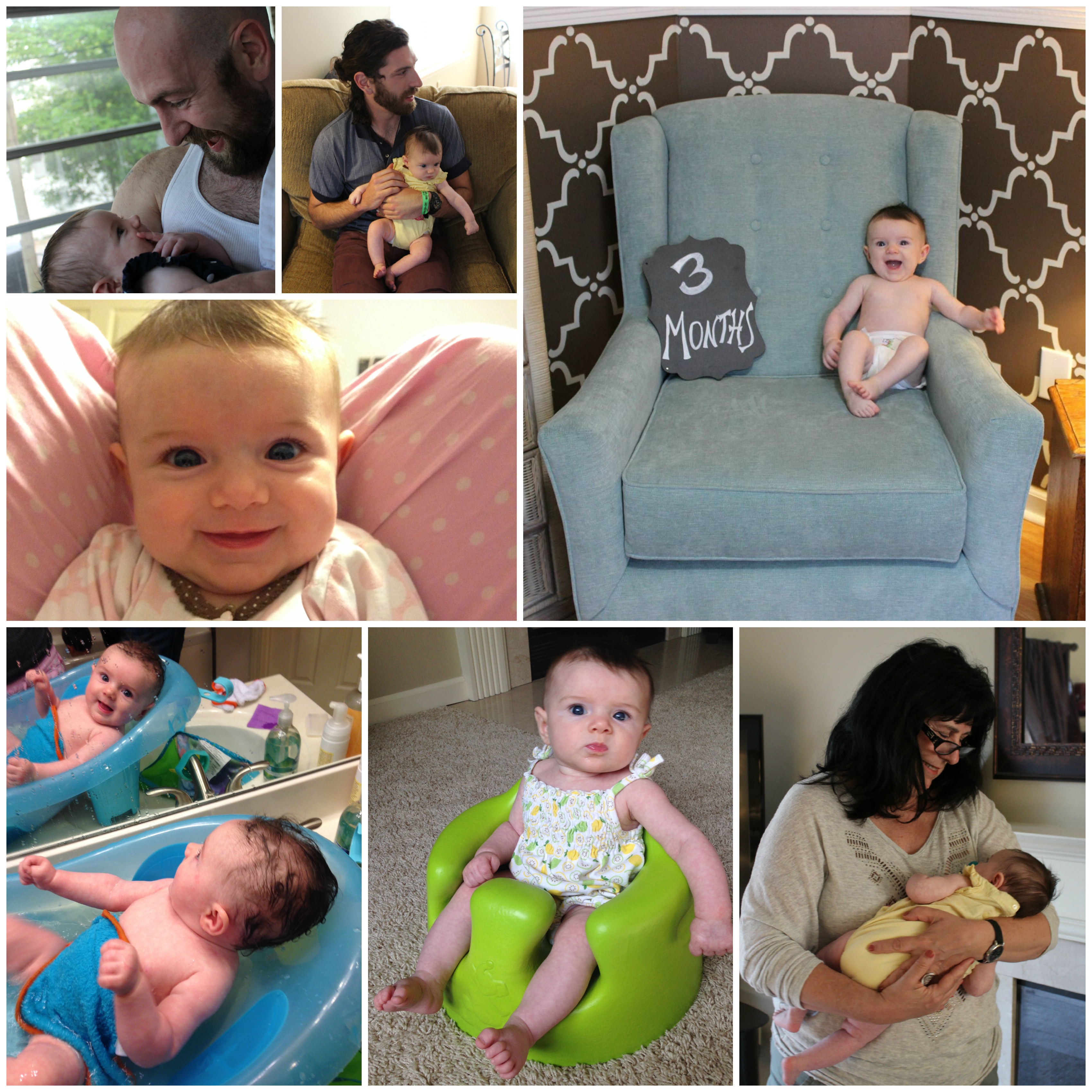 In May you were between 9.5 weeks, and 13.5 weeks old. You are such a sweet baby. You love to giggle and smile at us. You open your mouth wide when you’re excited, and bat your arms around. You love when people smile at you, and you are very ticklish. You still sleep ALL the way through the night. It’s truly amazing. From about 9 or 9:30pm to 6:30am- I can’t even believe I’m typing that! You love love love to stand up, and your legs are so strong. Of course we have to hold on to you to keep you balanced, but you are actually strong enough to stand up on your own. You despise tummy time and scream to tell us your displeasure. You love splashing in your bathtub during baths, and making a big mess over the mirrors. You still have gorgeous blue eyes and dark hair with porcelain skin, and dainty features. You truly are a gorgeous baby.