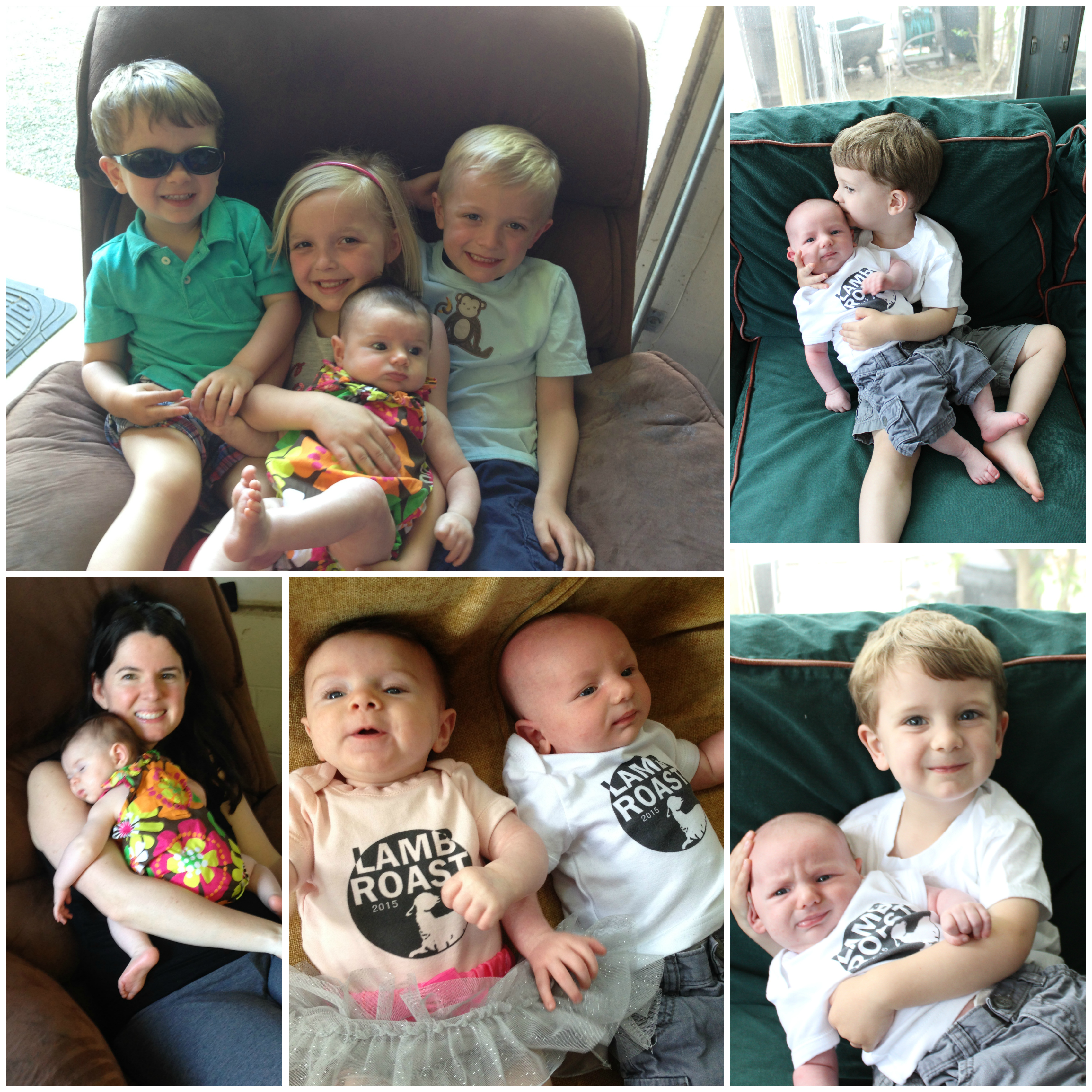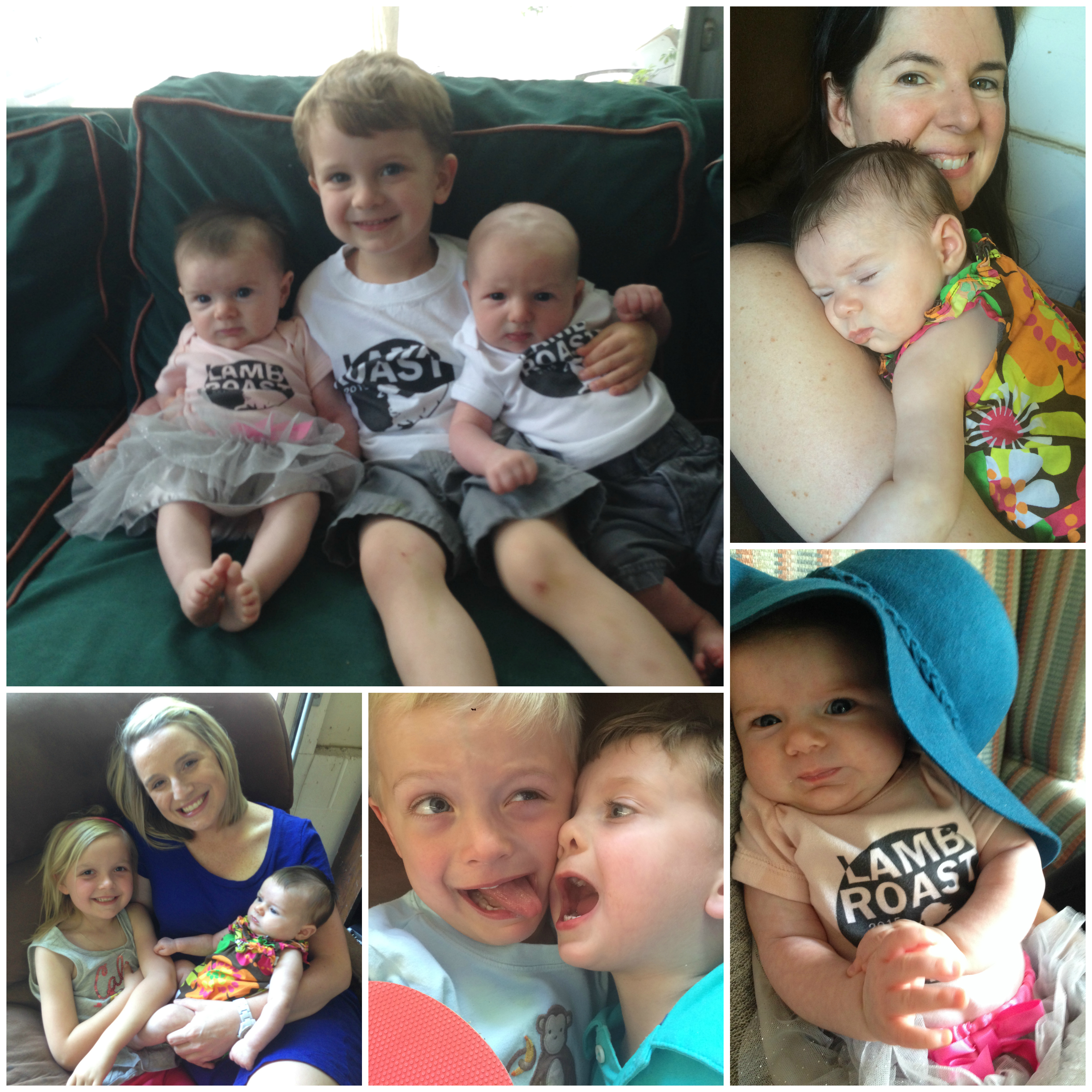 May was a busy busy busy month! It started out with Lamb Roast. This was your first (of many!) lamb roasts. It is our family’s tradition, it was the 45th Annual Lamb Roast. It was originally started by your great-grampa Evanoff, and then the tradition carried on through the years in the Coe Family. I got you, Grandin, and Lucas matching t-shirts. Yours was pink, and you wore a little tutu with it. You got to meet SO many new friends at Lamb Roast, and everyone adored you. Our whole family was there, even Uncle Joey, PopPop, and Grammy. Speaking of family, you got to spend a lot of quality time getting loved on by family this month, with everyone in town to see you. You loved all of the attention. You are a total Mama’s girl, and generally just love to be held. You are happy so long as you get your milk when you want it. Like your brother, you are also obsessed with holding on to my hair. When I’m old and going bald, I’m blaming it on you and Lucas!