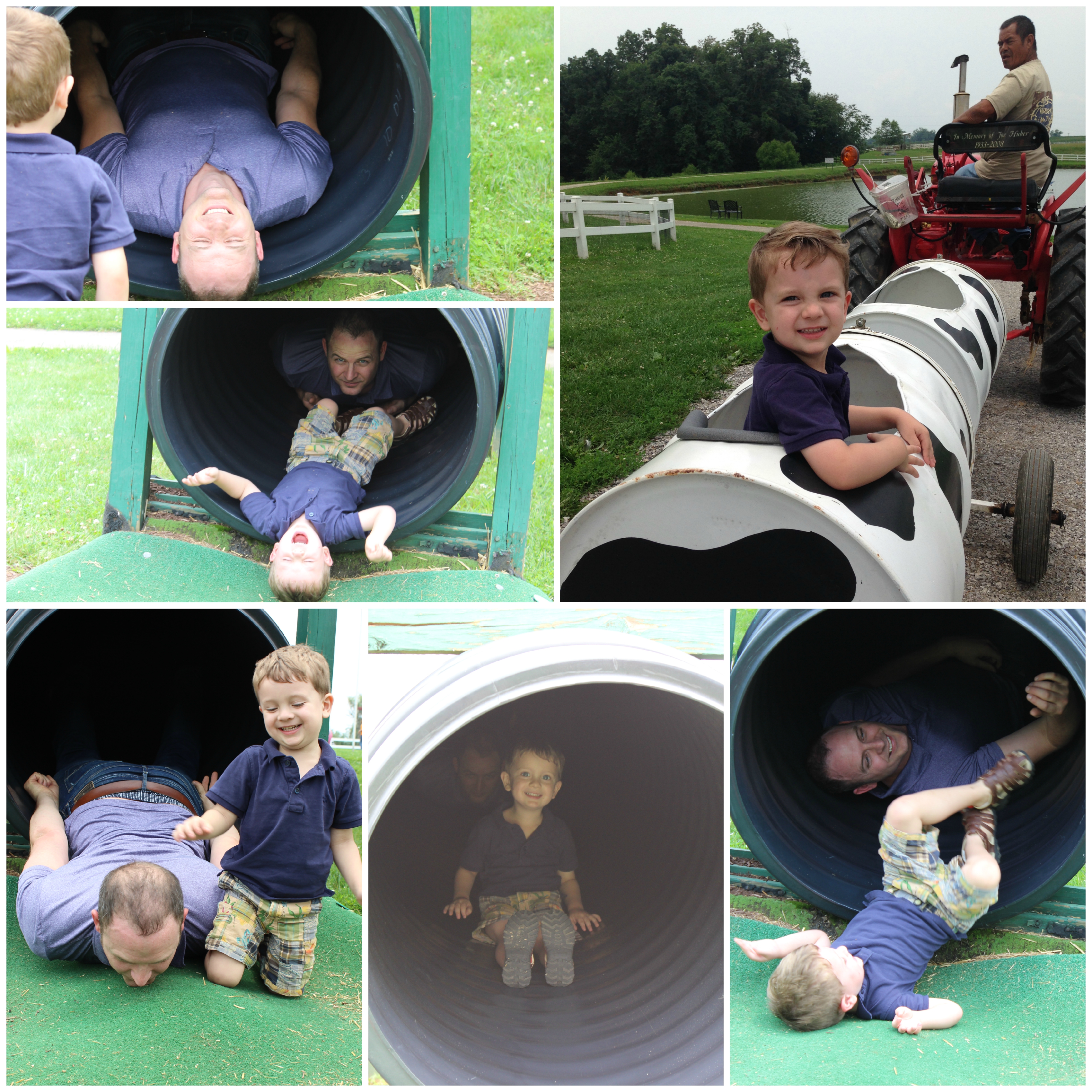 We’ve had lots of visiting with family this month, which started out with the 4th of July in Louisville. You got to hang with your cousin “Dandin” as you call him, and see Muncle Mike, PopPop, Aunt Katie, and Deanna. You love to walk in the magic forest with your PopPop in his backyard, and you love to feed his birds. In fact, every time we get to Natchez Lane now, you ask PopPop to feed his birds and walk through the magic forest. PopPop loves to show you the wild flower garden you helped plant, and to look at all the treasures in the “forest” (which is really a path in the back of the yard through the trees). You also got to go to a favorite restaurant in our family, Huber’s Farm, with your PopPop and us. You had a great time playing at the playground there, just like I did when I was a kid. Although the playground has gotten a lot cooler than it was when I was little.