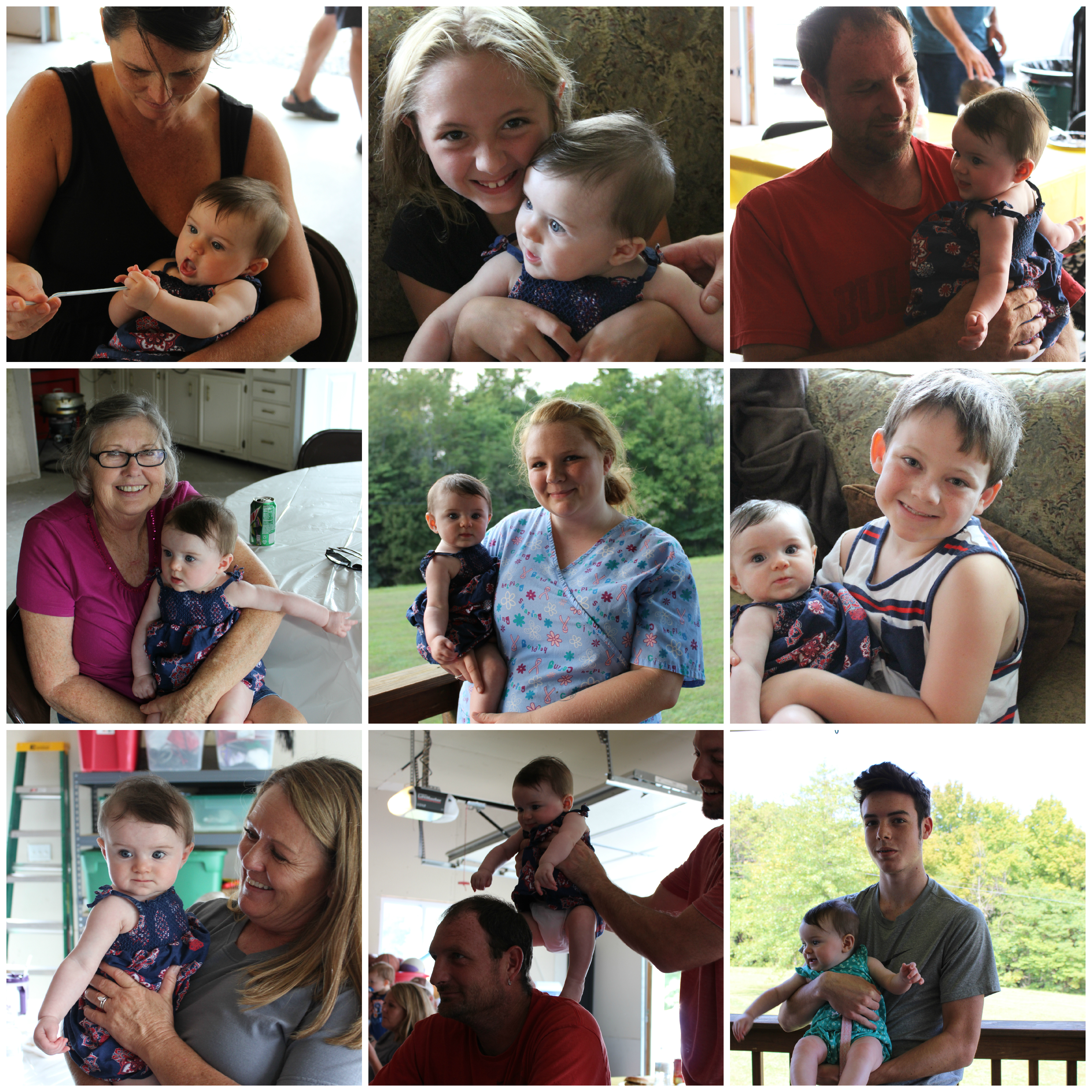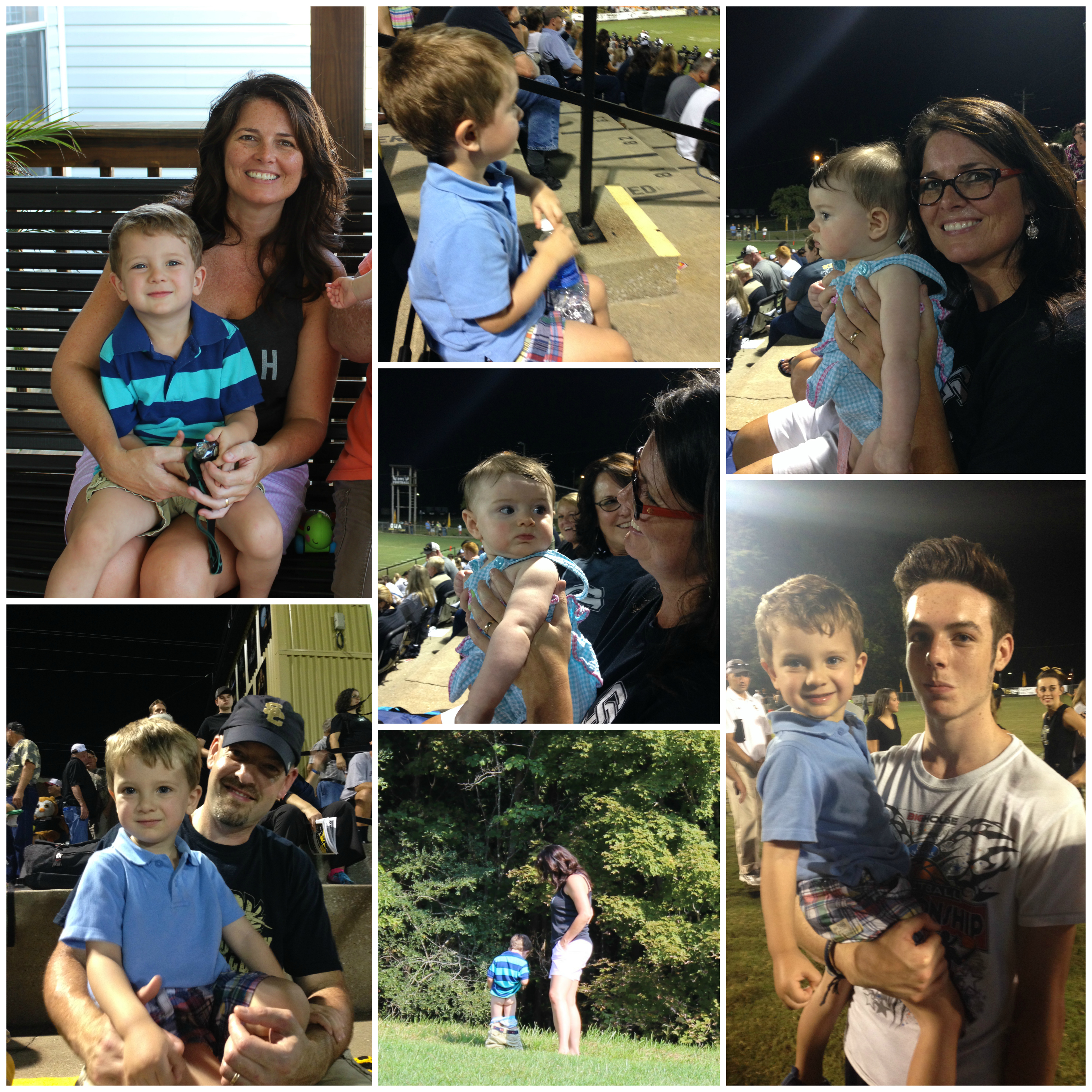 We went down to TN this month for your cousin Camron’s 18th birthday party (he was only 4 when Daddy and I started dating! So crazy!) The first night we were there, you went to your first sporting event ever and got to watch your Cousin Camron play football for his high school. You got to meet your Gramma and Poppa Mike for the first time (Daddy’s Mom and step-dad), as well as getting to meet your Uncle BJ’s fiance Mischele, and getting to see lots of other family and friends like Aunt Jera, Uncle Kevin, Grandaddy, Uncle BJ, cousins Camron, Nathan, Chelsea (& baby Brayden), Dylan, Tyler, Chase, Dakota, Pam, Jackie, Amy & Jimmy Dell, Shawn Parker, and many others. You also got to go in your first swimming pool (besides the baby pool in our back yard) at Amy’s house. You loved sitting in the float with me and your Aunt Jera and splashing around. You actually love splashing in any water. Showers, baths, pools- anything!