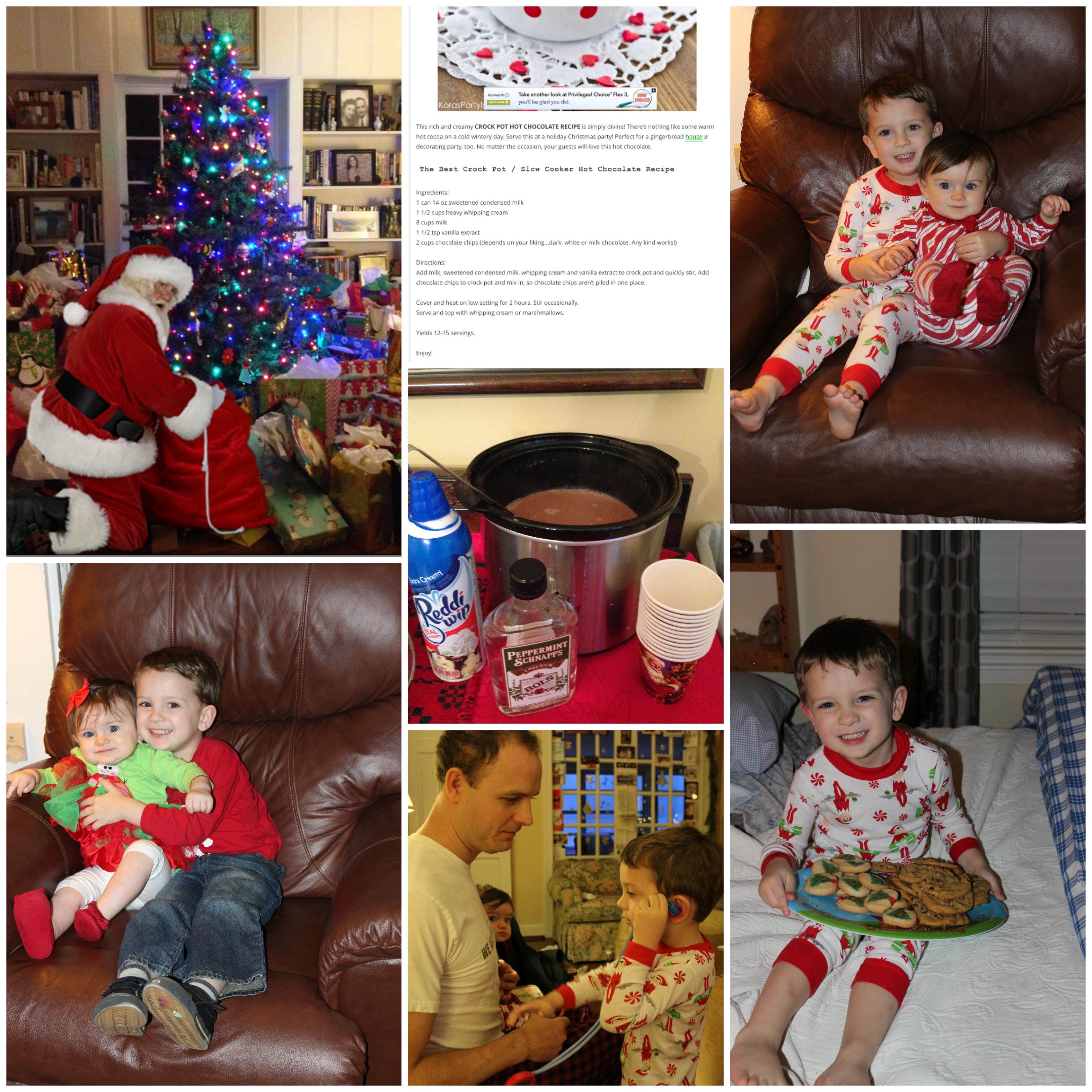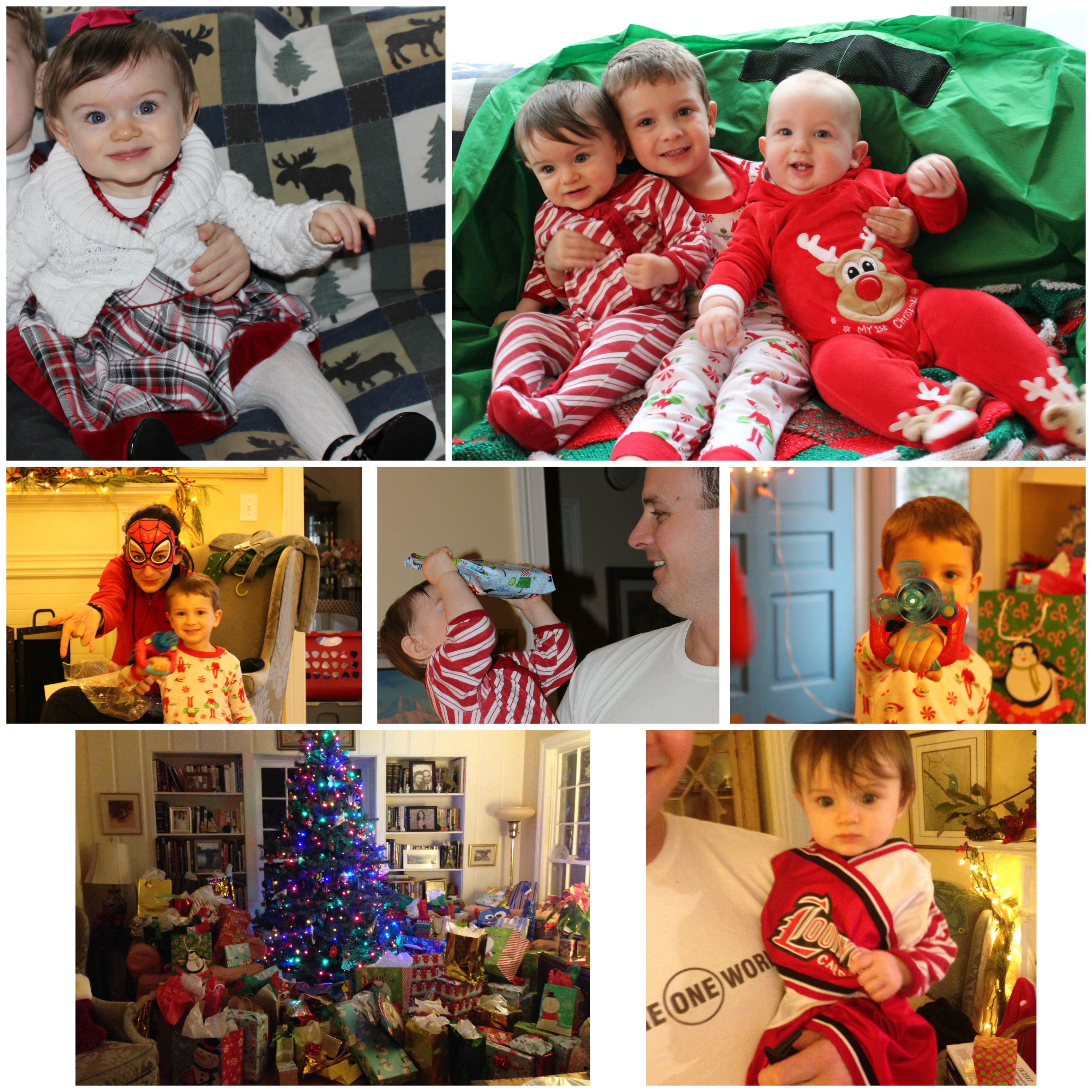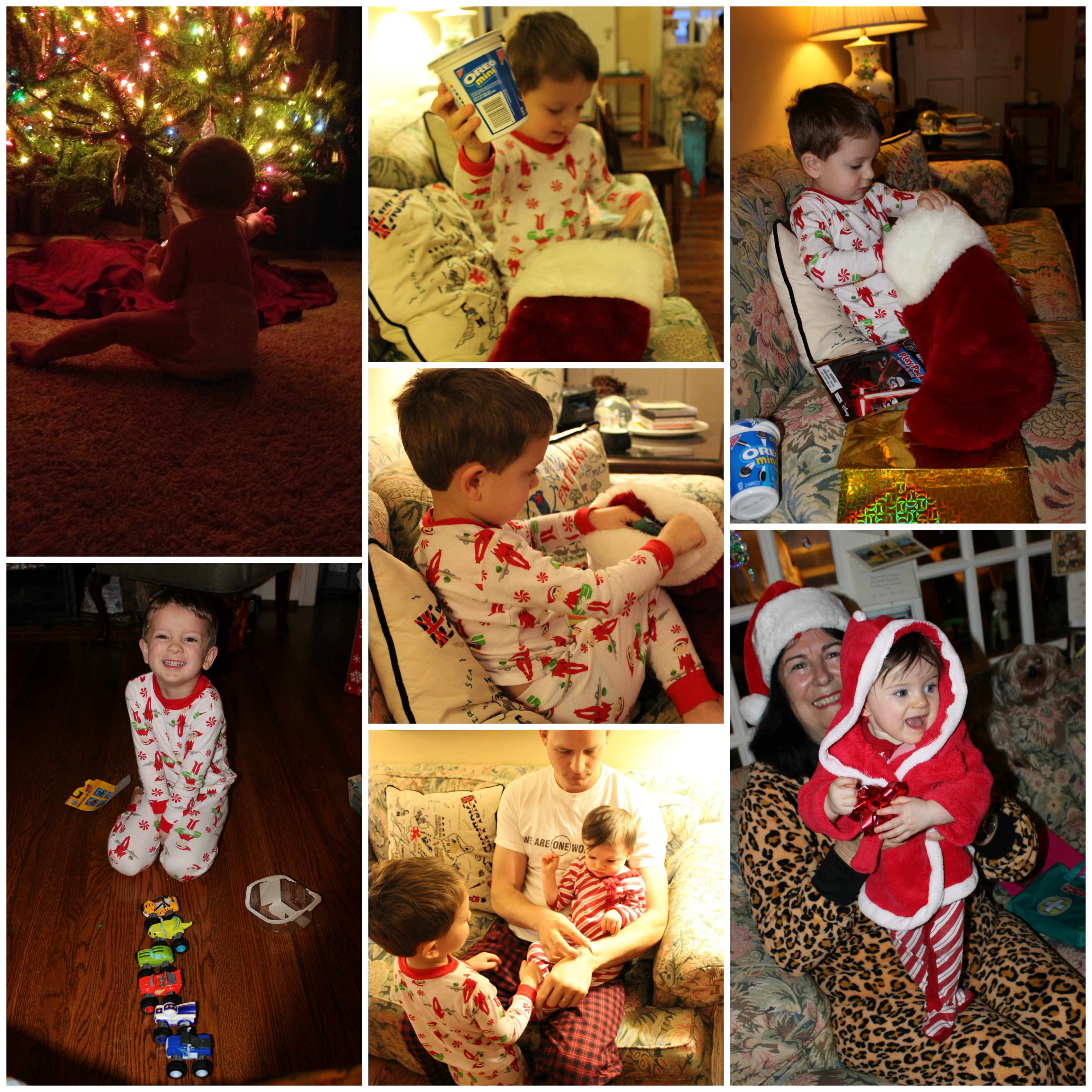 After we returned from TN, we got to spend only a couple days at home until we had to pack up to go into Louisville for family Christmas there. Don’t worry, I told Santa where to find you on Christmas Eve. We rolled into Grammy and PopPop’s house on Christmas eve and made sure to get our Christmas cookies for Santa in the oven (your brother helped me bake them). Turns out Mrs. Clause wanted sugar cookies with christmas tree decorations in them, while Santa wanted chocolate chip cookie, so we made a batch of both! We had a big Christmas eve dinner, and enjoyed hanging out with Dammy, PopPop, Muncle Mike, Aunt Katie, Uncle Potter, Grandin and Deanna. You and your brother both got new Christmas jammies from Elfie the magic Elf to wear to bed, and we busied ourselves getting ready for Santa’s arrival. The next morning on Christmas day you and Lucas woke up to a HUGE, enormous stack of gifts! We impatiently waited for the rest of the family to arrive, and once everyone got there, we tore into the gifts. We had our traditional blueberry pancakes with whipcream for breakfast, made mama’s crockpot hot chocolate, and then got changed into your adorable Christmas outfits. All of our extended family came over on Christmas night- Uncle Randy, Aunt Christe, Uncle Potter, Cousin Kelly, and Max. We played games, and you had a great time playing around on the ground with Grandin, trying to eat every single morsel of anything you found on the ground. Another tradition that you may understand when you’re older is to choose a way to give back to the community. This year we donated $$ to a Mom in a situation of domestic violence who needed help. Every year I hope to help you and Lucas see the importance of giving back. While this attitude is something we should have all year long, it is a good time of year to do a little something extra.
