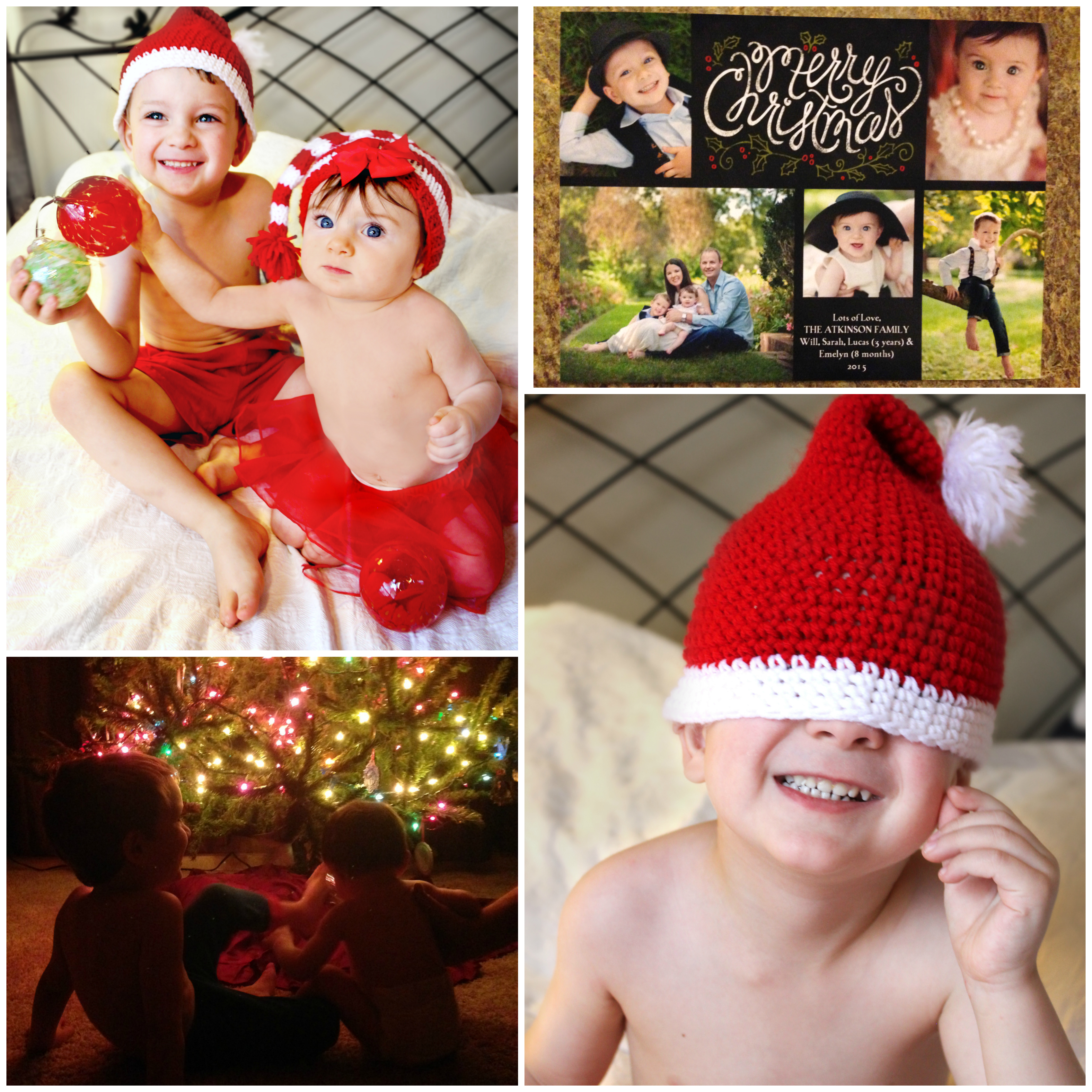 December held my one of my two favorite holidays… Christmas! It was so fun preparing you and your bubby for Christmas this year, especially since it was your first, and his first time understanding the magic of it. We decorated for Christmas while being careful that we now have a super curious infant who loves to put everything in her mouth, and a rambunctious 3 year old who has to touch everything. In fact, we ended up putting a baby gate around the entire tree that kept you away from it, hahaha! Hopefully one year soon you will stop pulling ornaments, and trying to eat them. We had your very first Christmas card made that featured our family photo, and then photos of you and Lucas from our shoot back in September. I LOVE how the card turned out.