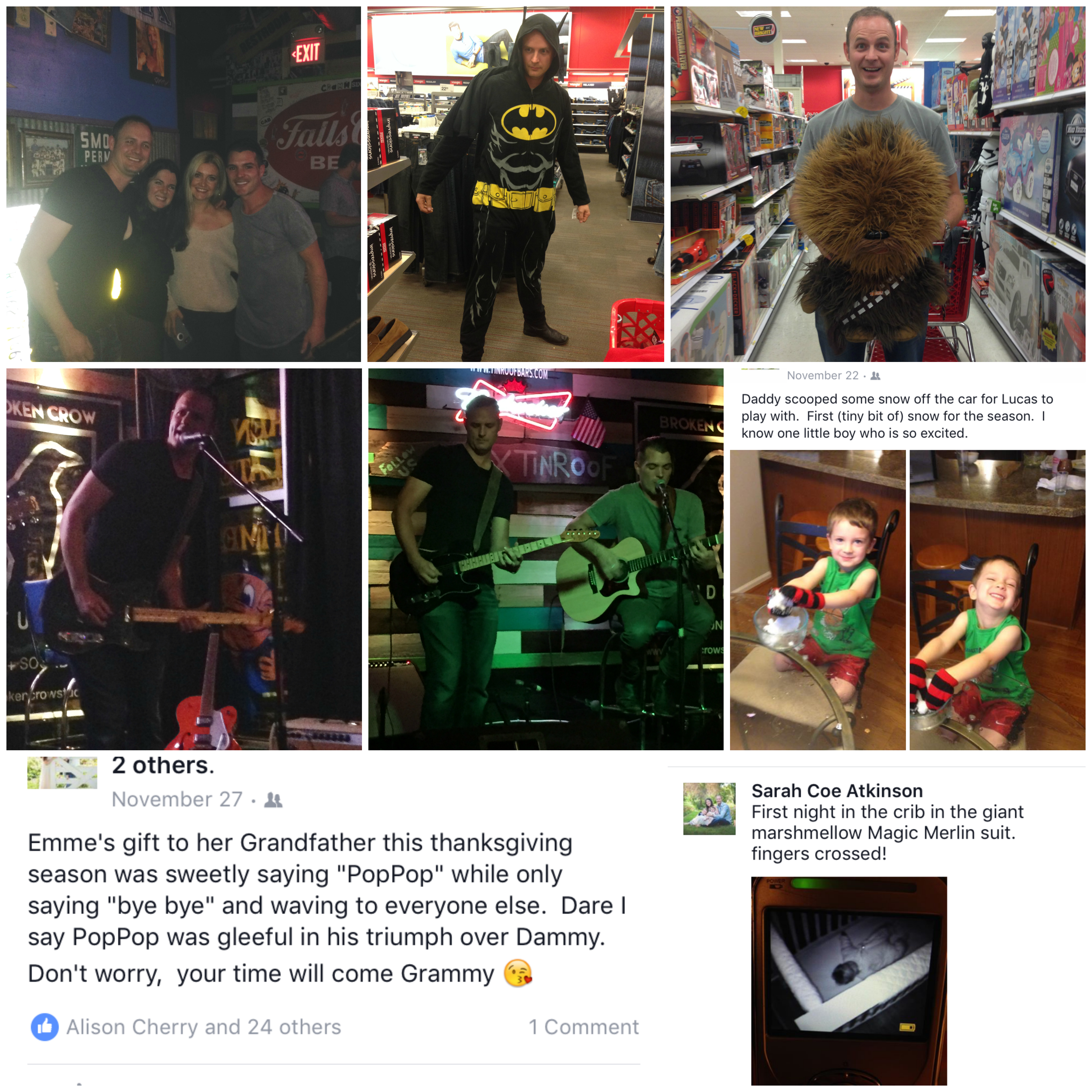 Thanksgiving was spent with family, as we grow and grow bigger Dammy had to add an extra table in the living room. You stick to your PopPop like glue whenever we’re at their house, and your very favorite thing to do is dig in his bird seed container, and then get a big scoop and walk to “the back 40” with PopPop, where he lifts you up so you can poor the seed into the feeder. You then always take a walk through the magic forest, and talk with him about all the cool stuff you see.
