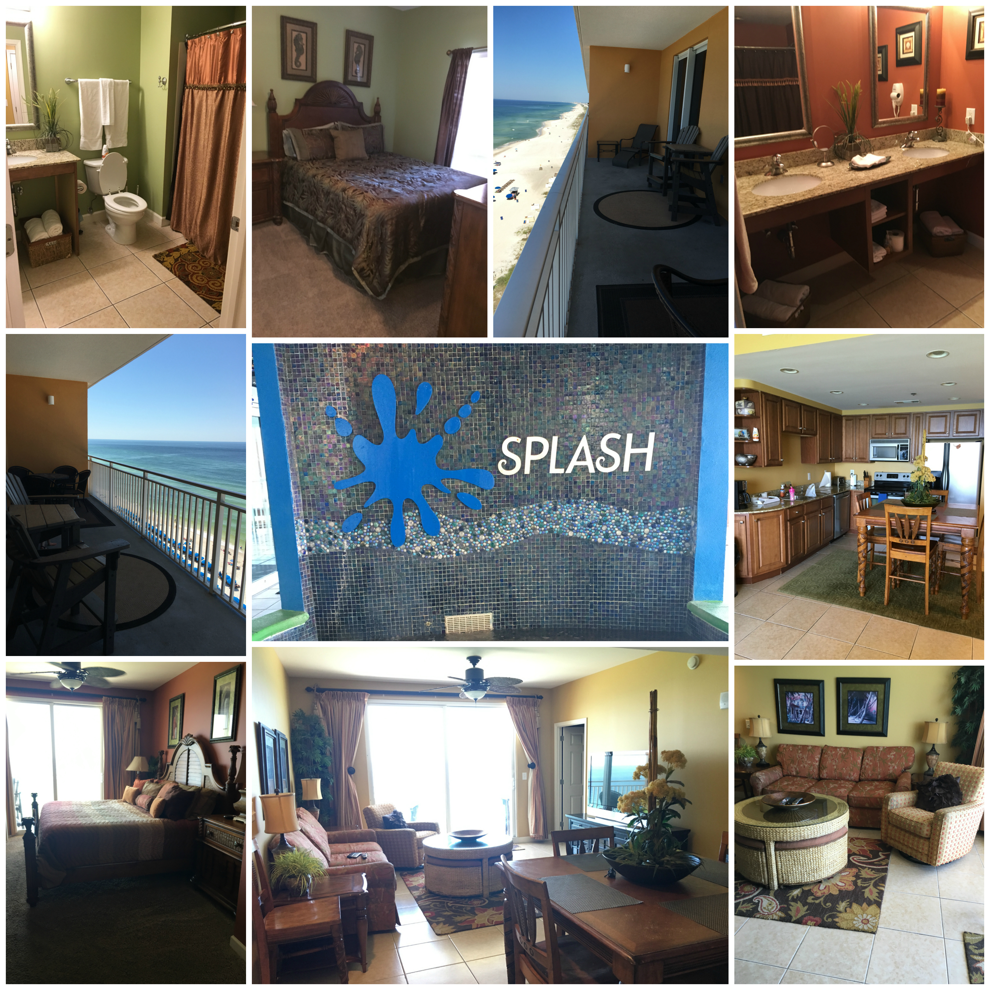 April! April! Guess what April is? Our very first vacation as a family of 4! I cannot tell you how PUMPED I was for this trip. Your cousin Heather Atkinson (Daddy’s cousin, so really your second cousin, but whatever) was getting married in Georgia, and since it’s such a long trip, we planned to add on a beach vacation. Daddy managed to borrow an awesome minivan from a dealership for our first family roadtrip. We packed up waaaaaaay too much stuff and headed down to our awesome condo in Florida. We made it all the way to Alabama before we stopped to sleep for the night, and then got up the next morning, and drove the rest of the way down. Our condo was AWESOME! It was at a resort called Splash, that is a water park right on the beach. It was such incredible views with a balcony the spread the length of the place, a master bedroom and bathroom, a separate bedroom and bathroom for you kids, washer/dryer, kitchen- everything! It really was the perfect place for us. You guys (and us) were absolutely enamored with the balcony, and the view of the ocean. Lucas, you were so pumped to dig in the sand with all your new toys, and LOVED play in the waves. Emme- you hated the feel of the sand on your toes, and would cry unless you had your shoes on, or were sitting on a blanket hahaha! Although you loved digging in the sand, so long as you could sit on a blanket to do so. You also loved playing in the ocean, and really were annoyed we wouldn’t let you plunge yourself to your death amongst the waves.