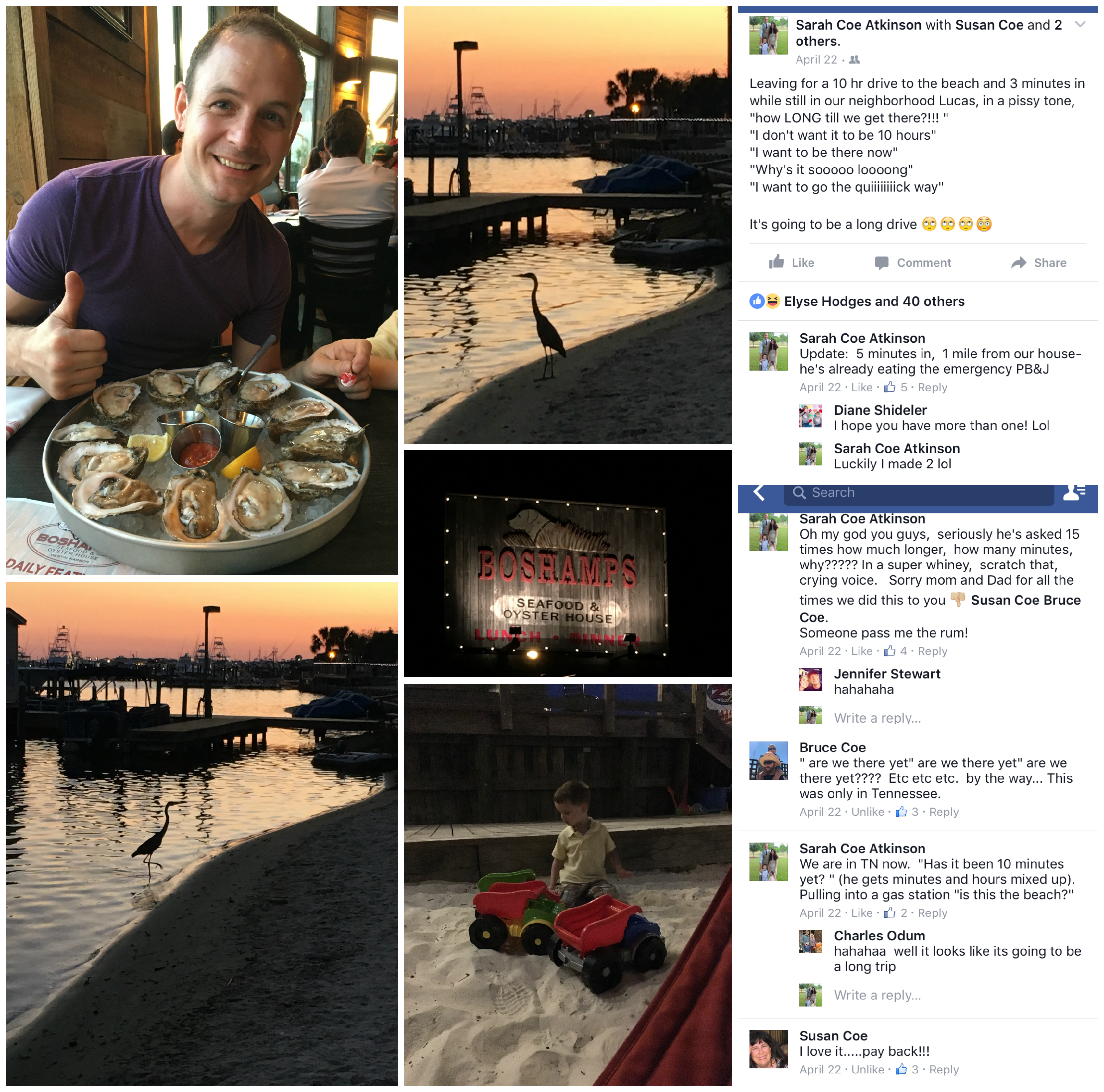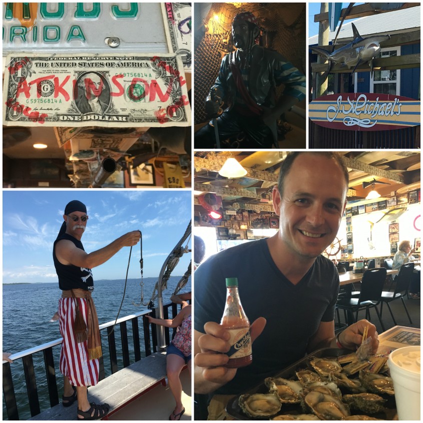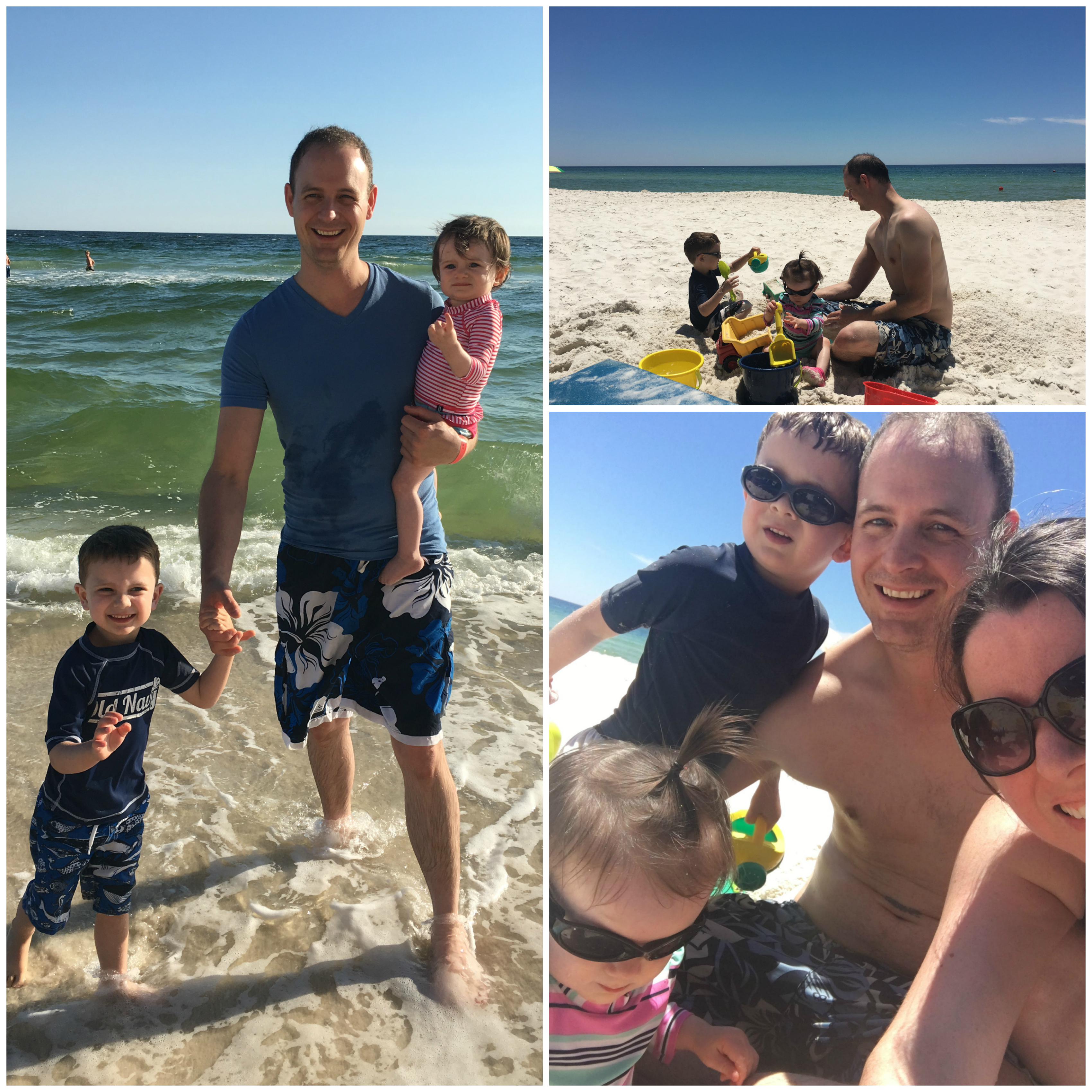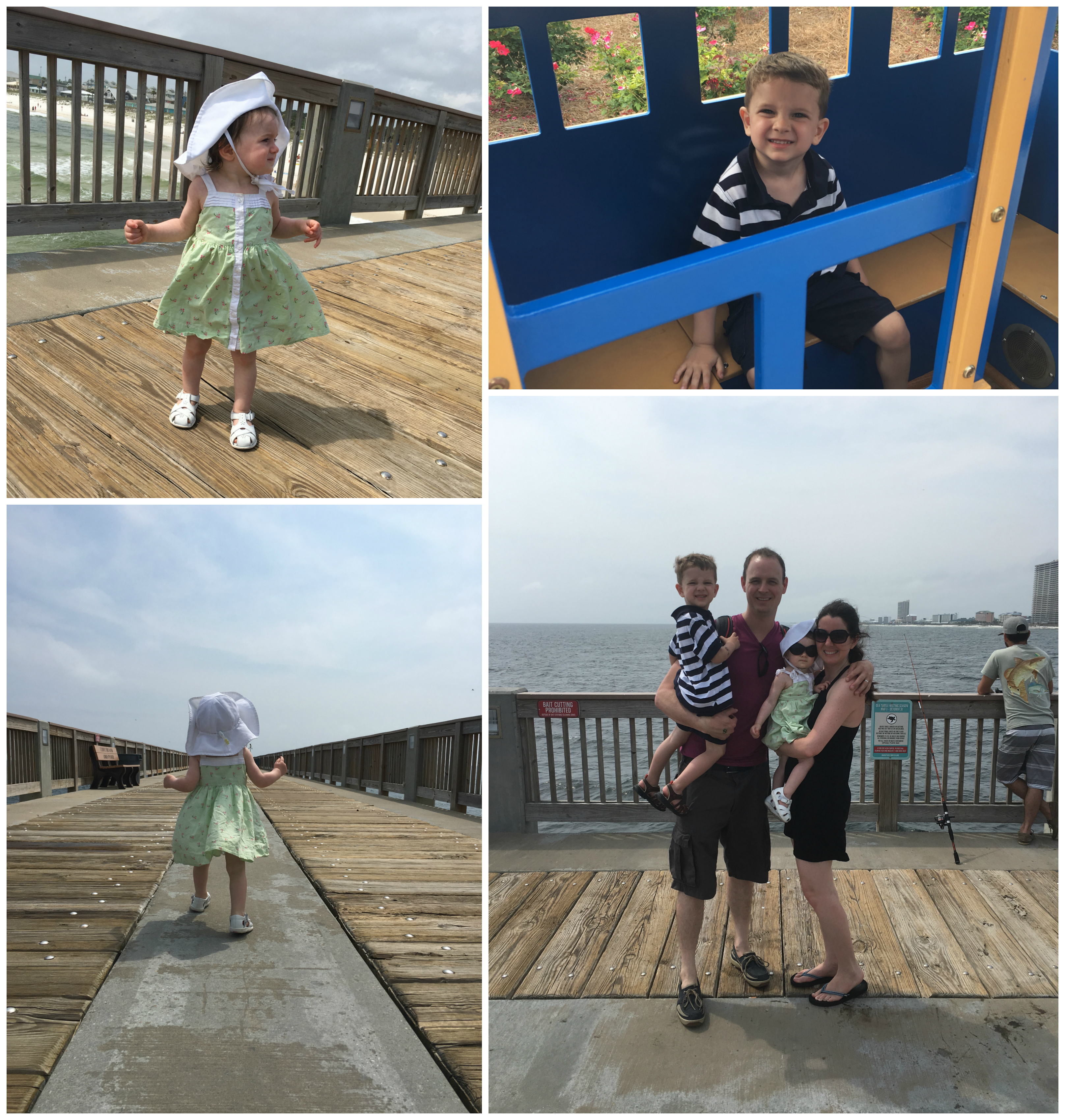 We did all sorts of fun stuff on this first part of the trip, some of the highlights being the SeaDragon Pirate Cruise, where we went out on a real pirate ship, with a bunch of Pirates in awesome costumes. You guys got to have sword fights, walk the plank, hear old pirate stories, find treasure, dance, have water gun fights, and more! It was so awesome. Lukie, you especially loved it! We got you both matching pirate swords, Emme’s with a light pink handle, so we could tell them apart. It was a blast to see you guys enjoy yourselves. And Mama enjoyed the rum punch those pirates served! hahaha! We got to cruise out on the ocean, and even saw dolphins. We ended that trip, and went to a hole in the wall restaurant nearby that the pirates recommended where you both got to play in the kids area, and Daddy and I could eat our oysters and fried shrimp in peace. So much fun for all of us!! We also loved going to St Andrews State Park and setting up our sun tent, and chairs, combing the beach for seashells, walking in the waves, and playing in the sand. We went to Panama City Beach’s pier and watched the fishermen reel in these GINORMOUS fish, and it was such an unexpected fun activity. You both loved to clap when the guys would catch one. We shopped in Destin, walked their marina, and ate at more fun and awesome restaurants. I could go on and on and on about what a wonderful family vacation it was.