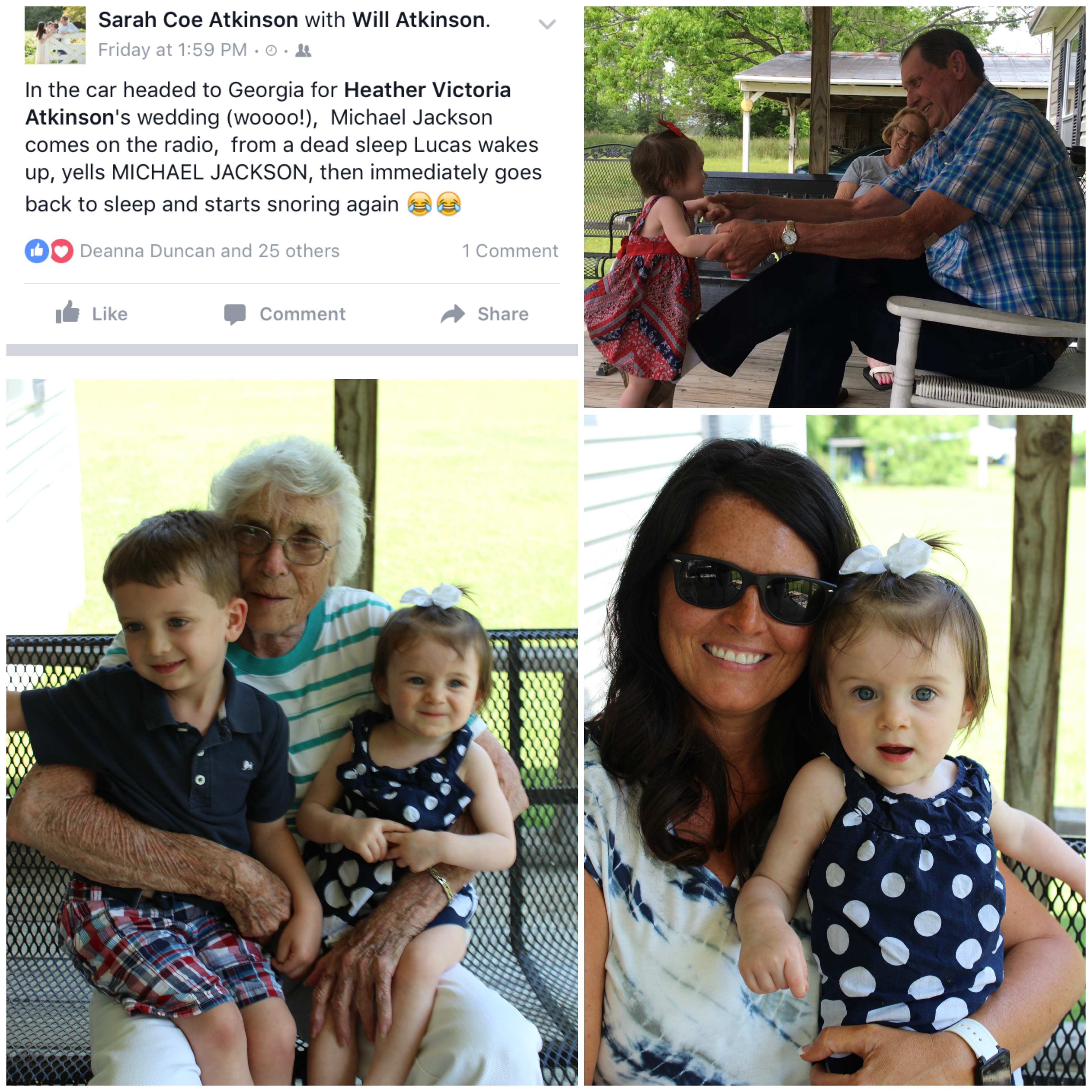 We stayed in Panama City Beach for 6 nights before we left, and headed to Donalsonville, Georgia where your great-grandmother, Granny Lou, and other family live. Granny Lou is Daddy’s Granny, and it was the first time either one of you had met her, or any of Daddy’s extended family in Georgia. Your Aunt Jera, Grandaddy, and Granny Pat had come down from TN for the wedding too. Lucas- you loved racing around Granny Lou’s house, and taking walks down the dirt road (named after your Great-Grandaddy, Walter C. Atkinson) with your Aunt Jera. Aunt Elise even went and got her school bus and drove us around in it! Boy oh boy, you guys loved that bus!! The next day after we arrived was Heather’s wedding, and everything was beautiful! You guys loved dancing on the the dancing floor, and you both looked amazing in your outfits. Lucas- we had bought you a little blue and white searsucker dress pants and vest when we were in Florida, and you were so handsome. Emme- you had a little floral dress on that matched the wedding party, were absolutely precious. So, as I already said, this whole trip was amazing. It was so awesome to spend this time together as a family, and it made it so much more special that we had such a good time! And you guys did really well on the drive too!! (Although, on the way down to Florida, Lucas- you began asking how much longer before we had even left our NEIGHBORHOOD! hahahhaha. I won’t make the mistake of mentioning it’s a long drive again, lol!)