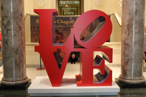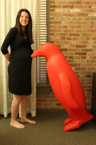 Wow, time flies!  Your Dad and I have been married for 4 years today, and together for 10… A DECADE.  I guess that means we’re old!!   This anniversary was your Dad’s turn to plan it (we take turns each year).  He surprised me by planning a weekend in downtown Louisville.  We stayed at the 21c Hotel, which is also an art museum!  21c has these red penguins that roam around the hotel.  One night we got a phone call telling us we had a penguin delivery so we opened our door to find this guy staring at us!  Me may have borrowed him for some pictures inside our room!
