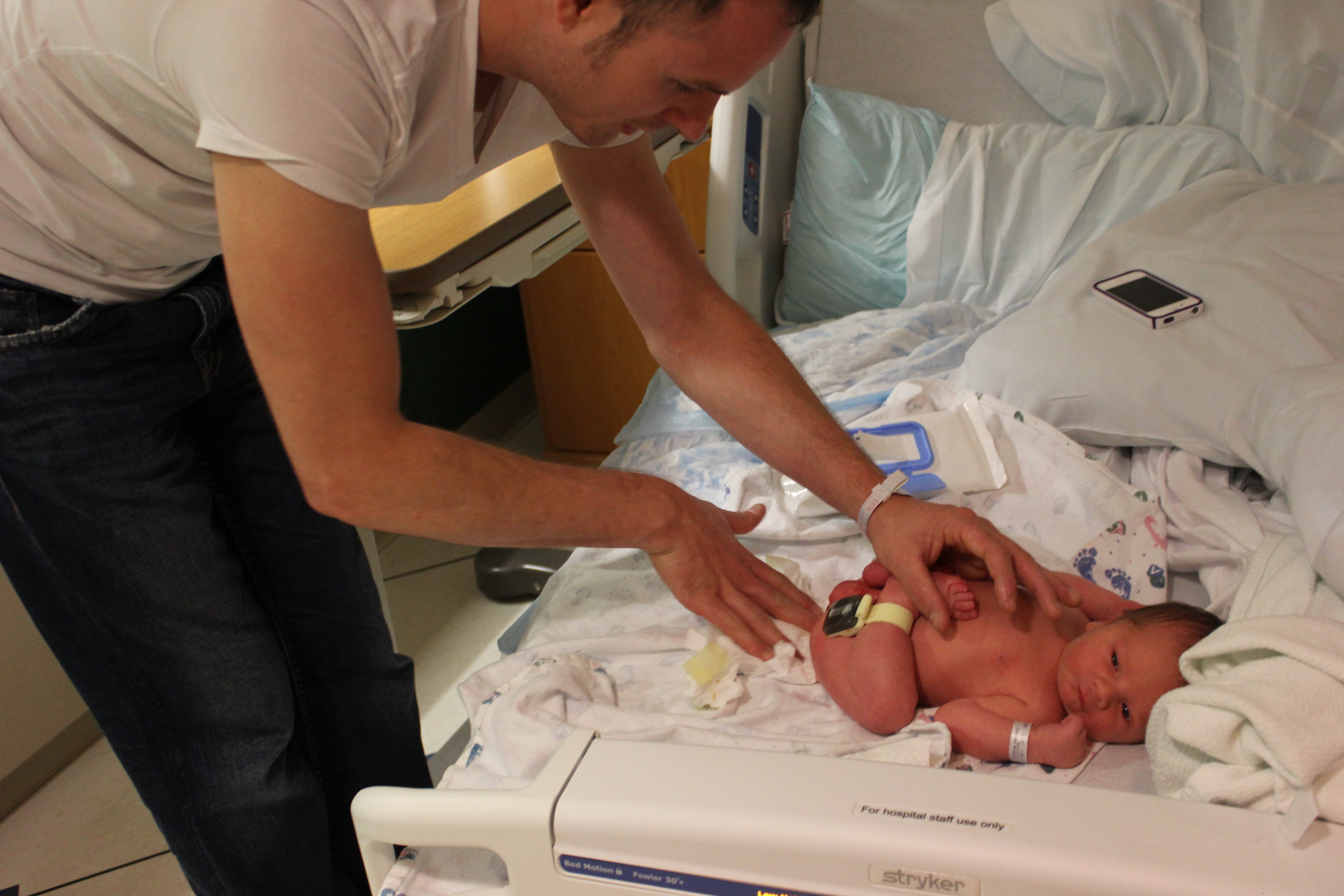 You got your first diaper change by Dad. Your Grandaddy and Aunt Jera drove up from Tennessee to meet you, and lots of your Aunties came to visit you on that first day. You passed your hearing test, and generally were just adorable. When visitors were not holding you, you mostly just laid on my chest. No matter how fussy you were, as soon as you laid on me, you quieted down. My heart rate and breathing must sound familiar to you from all those months on the inside! That first full day you went on an eating hiatus. You were so tired, and didn’t really have any interest in food whatsoever. We had several lactation consultants stop in to try to help, but you just wanted to sleep! Lazy boy