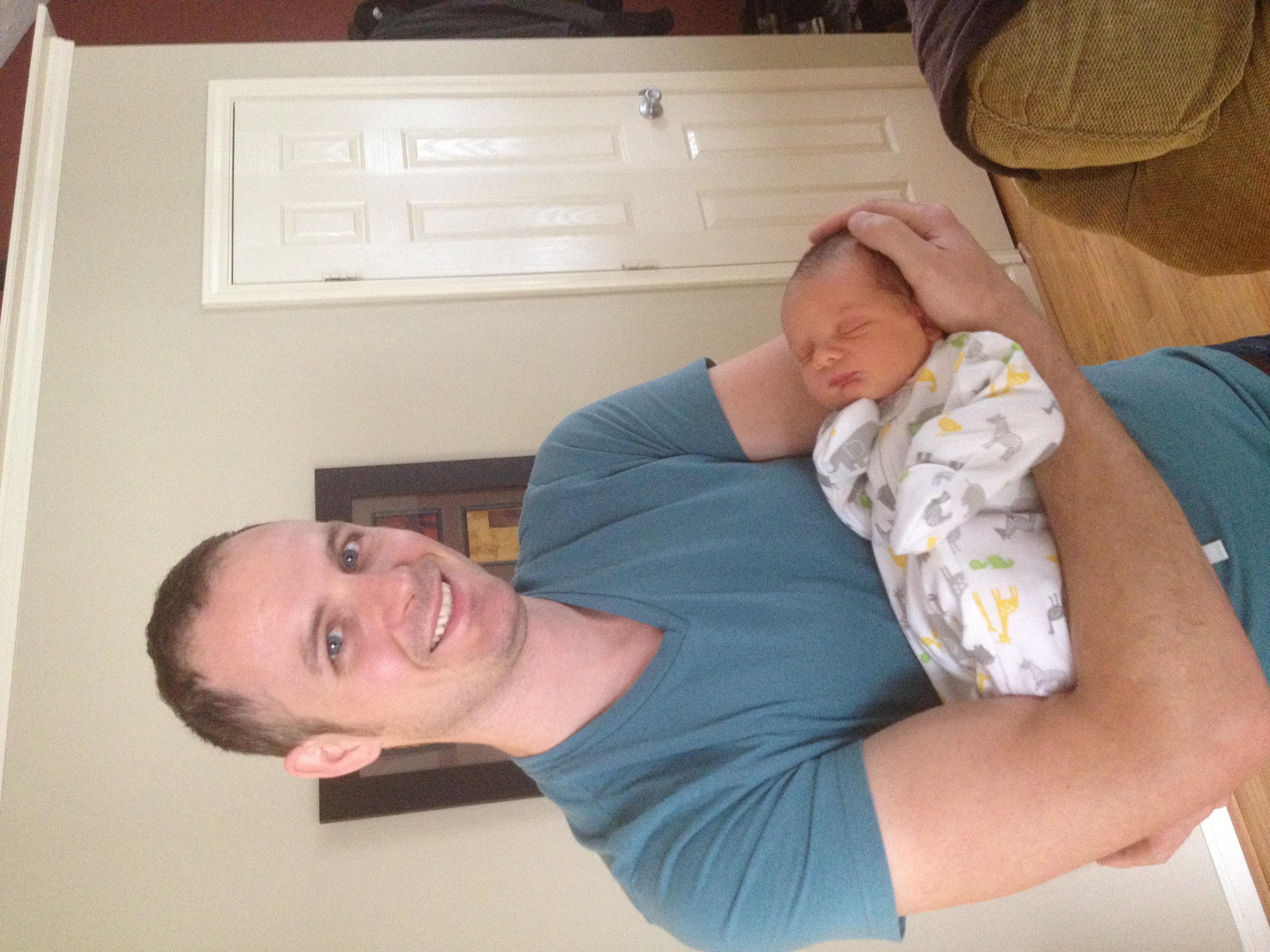 we’re worried about you every second of every day. I find myself putting my hand on your chest, or in front of your nose to make sure you’re still breathing about a million times a day. When we got home, I snapped a quick picture of Daddy holding you for the first time in our home: