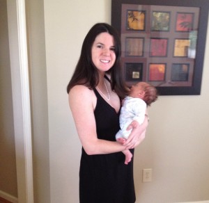 first time away from you since you were born (to go to your Auntie Julie’s wedding shower). It went really well. Dad said he had no problems. That’s a relief! From here on out Dad will be feeding you one bottle a day, to get you used to having bottles when I have to go back to work. I am hoping to pump extra milk for you, so we have a freezer stash as well.